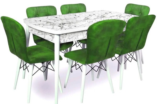 Set masa extensibila cu 6 scaune tapitate Homs cristal alb-verde 170 x 80 cm