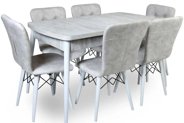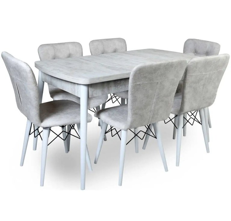 Set masa extensibila cu 6 scaune tapitate Homs cristal- mai mult loc pentru familia taAccesorizeaza-ti camera de zi sau bucataria, cu un set masa extensibila cu 6 scaune tapitate Homs cristal, pentru un cadru 100% original. Masa extensibila este piesa de rezistenta din zona de dining, mai ales cand vrei sa creezi mai mult spatiu pentru cei dragi.Masa pentru bucatarie este lucrata cu atentie si te ajuta sa-ti optimizezi spatiul din orice camera. Blatul este foarte rezistent fiind realizat din PAL de 18 mm de culoare alb cu irizatii usoare de gri. Fie ca o amplasezi intr-un open-space, sau vrei sa gatesti pe ea, masa iti ofera un loc multifunctional. Poti sa gatesti, sa te joci sau sa servesti masa.Masa AlbPicior alb (lemn)scaune :bejpicoare alb (lemn)Dimensiuni:Masa: L 130, l 80, h 75 cmMasa extinsa: L 170, l 80, h 78 cmScaun: L 47, l 42, h 88 cmCum sa decorezi cu mese si scaune HomsAlaturi de o masa bucatarie si un set de scaune tapitate, in acorduri gri, poti sa-ti optimizezi camera, si sa economisesti mai mult spatiu. Nuanta texturata a blatului este de un alb deschis, iar finisajul o face ideala in spatiile cu umezeala si abur, cum ar fi bucataria. Pentru bucatarie, acesta piesa decorativa este esentiala, atat in gatit, cat si in luarea cinei. In plus, acesta creeaza un cadru luminos, aerisit si bine organizat.Pentru mai multe ingrediente si tacamuri alege sa decorezi cu un dulap bucatarie. Daca este amplasata in living, cu o biblioteca si o comoda TV pe care sa-ti pui televizorul si sa te uiti la emisiunile indragite.Vezi mai multe modele de seturi mese si scaune si da viata casei tale.