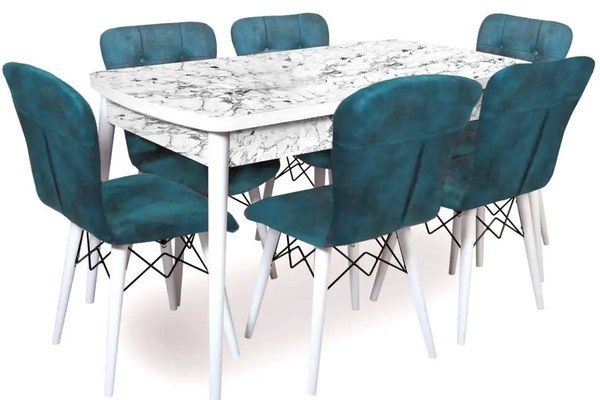 Set masa extensibila cu 6 scaune tapitate Homs marmorat alb  250-30650 - turcoaz 170 x 80 cm