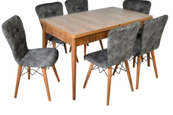 Set masa extensibila cu 6 scaune tapitate Homs nuc-gri 170 x 80 cm