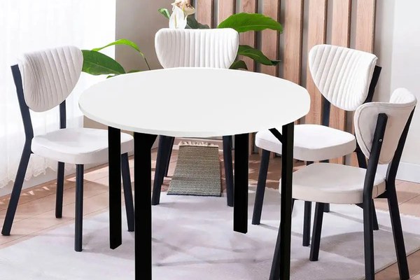 Set masă Onita rotundă pentru bucătărie cu scaune tapițate – compact, elegant și confortabilÎți dorești un colț de dining practic și stilat? Setul Onita este alegerea ideală pentru bucătării sau zone de luat masa cu spațiu limitat, dar elegante și rafinate. Masa rotundă albă și scaunele bej cu structură neagră oferă un contrast plăcut și un aspect modern, ușor de integrat în orice decor. Compact, ergonomic și ușor de montat, acest set aduce un plus de rafinament în casa ta.Caracteristici și avantaje ale setului Onita cu masă rotundă și scaune tapițateMasă rotundă cu blat alb – Formă prietenoasă, perfectă pentru interacțiune și economisirea spațiului.Scaune cu design ergonomic – Spătar semirotund și șezut confortabil, gândite pentru susținere optimă. Scaunele Onita sunt concepute ergonomic, asigurând confort maxim în timpul utilizării. Înălțimea scaunelor de 80 cm și dimensiunile compacte le fac potrivite pentru orice tip de încăpere.Tapițerie bej delicată – Oferă un aspect elegant și cald, ușor de integrat în diverse tipuri de decor.Picioare metalice negre – Oferă stabilitate și un plus de contrast întregului ansamblu.Umplutură cu burete pentru scaune – Asigură un confort sporit la fiecare masă sau pauză de cafea.Set livrat într-un singur colet – Setul este livrat într-un singur colet, compact și ușor de manipulat, facilitând transportul și montarea în spațiul tău în cel mai scurt timp posibil.Detalii tehniceMasa : R:90 x h:75 cmScaun: h:90 x L:47 x l:54 cmIdei de asortare în decor cu setul de masă și 4 scaune OnitaÎntr-o bucătărie scandinavă sau minimalistă – Contrastul dintre alb, bej și negru oferă o atmosferă calmă și modernă. Adaugă vaze cu flori sau obiecte decorative pentru un plus de personalitate.Într-un colț de dining luminos – Masa rotundă maximizează spațiul, iar scaunele bej adaugă un aer rafinat. Dacă ai nevoie de zone de depozitare, adaugă rafturi de perete în nuanțe de ab sau bej, pentru a lumina și mai mult spațiul. Explorează și alte seturi de masă cu scaune, mese de bucătărie, scaune sau alte piese de mobilier pentru bucătărie.