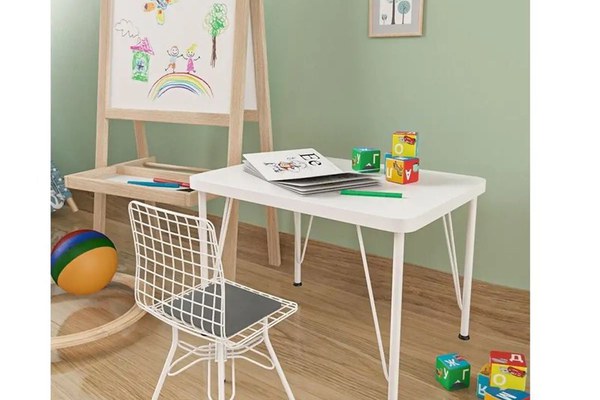 Setul Baby aduce un aer nordic camerei copilului, fiind realizat din PAL rezistent, cu finisaj alb/natur. Cele doua scaune si masa spatioasa sunt perfecte pentru desen, citit sau luat gustarea. Designul ergonomic si materialele sigure il fac potrivit pentru prescolari si scolari mici.Caracteristici: Lungime - 64 cm Latime - 48 cm Inaltime - 50 cm Grosime blat masa