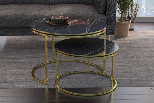 Set masuta de cafea Homs, 2 buccoloare:negru argint Dimensiuni:Masuta 1: R:70.5,h 46.5 cmMasuta 2: R:50.5,h 40.5 cm Set format din 2 bucati de mesepicioare: metal