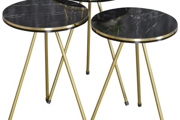 Set masuta de cafea Homs, 3 buc Dimensiuni:Masuta 1: R:33.8, h 52 cmMasuta 2: R:33.8, h 49 cmMasuta 3: R:33.8 h 46 cmSet format din 3 bucati de mesepicioare de metal