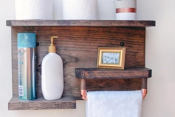 Suport prosoape baie,bucatarie din lemn,raft,serie wood, Homs 40 x 40 x 11 cm, 700011