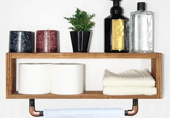 Suport prosop din lemn-metal Industrial Homs,seria wood 48x10 x 25 cm,700165