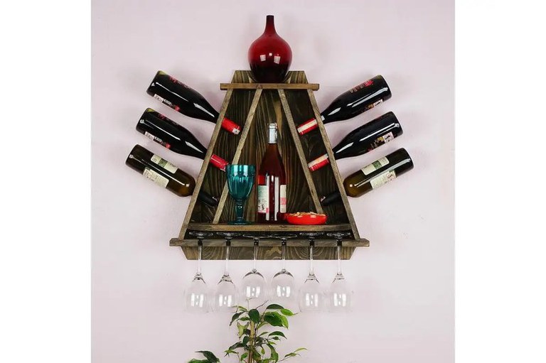 Suport sticle pentru perete din lemn,seria wood Homs 58 x 57x18 cm,natur Dimensiuni: L 57, l 18, h 58 cm