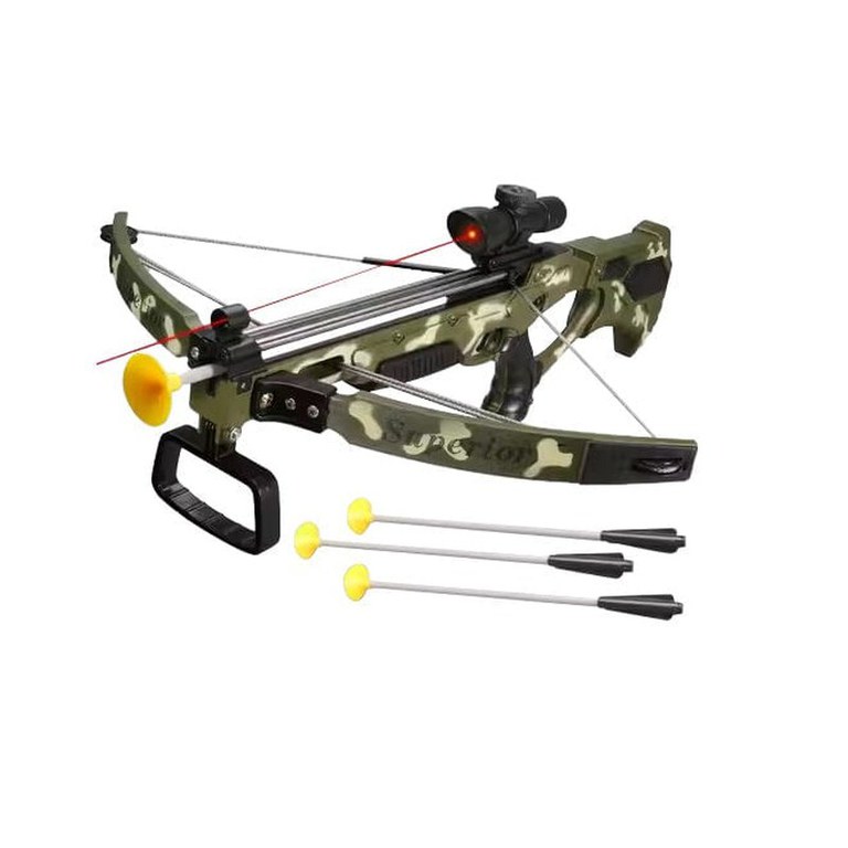 Arbaleta de Jucarie, Crossbow, pentru Copii 6 ani+, cu Ghidaj Laser si 3 Sageti cu Ventuze, Verde Camouflage/nAceasta arbaleta de jucarie Crossbow este perfecta pentru micii aventurieri de peste 6 ani, oferind ore intregi de distractie in siguranta. Cu un design modern si atractiv in verde camouflage, arbaleta este echipata cu un ghidaj laser pentru o tintire precisa si vine cu 3 sageti cu ventuze, care se lipesc usor de suprafetele netede. Proiectata pentru a incuraja abilitatile de coordonare si concentrare, arbaleta ofera o experienta captivanta si sigura pentru cei mici, stimuland creativitatea si imaginatia./nCaracteristici:Ghidaj laser pentru o tintire precisa: Arbaleta este dotata cu un ghidaj laser, care ii ajuta pe copii sa isi imbunatateasca precizia si abilitatile de tintire.3 sageti cu ventuze: Setul include 3 sageti cu ventuze, care se lipesc de suprafetele netede, oferind siguranta si distractie in timpul jocului.Design verde camouflage: Aspectul in stil camouflage adauga un plus de realism si atractivitate arbaletei, stimuland imaginatia copiilor.Potrivita pentru copii de 6 ani+: Conceputa pentru copii mai mari, arbaleta este sigura si usor de utilizat, oferind distractie activa si in siguranta.Dezvoltarea abilitatilor de coordonare si concentrare: Joaca cu aceasta arbaleta ajuta la imbunatatirea coordonarii mana-ochi, a atentiei si a concentrarii intr-un mod distractiv.Materiale sigure si durabile: Fabricata din materiale de inalta calitate, arbaleta este rezistenta si sigura pentru utilizarea de catre copii./nCu aceasta arbaleta de jucarie Crossbow cu ghidaj laser, micutii tai se vor bucura de aventuri captivante si vor putea sa isi dezvolte abilitatile de tintire si coordonare, totul intr-un mod sigur si distractiv!