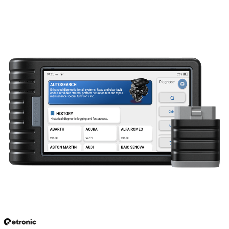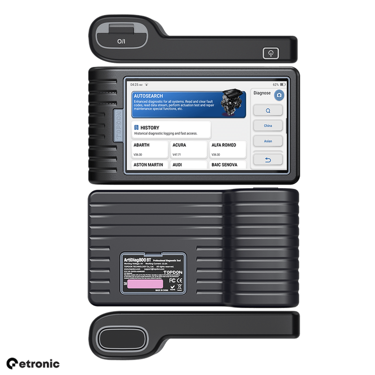 ArtiDiag800 BT este un tester auto wireless, compatibil cu peste 95 de marci de autovehicule, care ofera informatii detaliate si precise. Acest scanner OBD2 utilizeaza tehnologia AutoVIN si poate efectua resetari de baza ale computerului, dar vine si cu 28 de servicii de întretinere, cum ar fi resetarea uleiului, reglarea clapetei de acceleratie, calibrarea SAS si resetarea DPF./n/n/nTesterul auto ArtiDiag800 BT are 28 de functii de resetare, pentru peste 95 de marci auto printre care:/n/n/n/n/n- resetare interval service/n- aerisire ABS/n- regenerare DPF/n- adaptare EGR/n- resetare EPB/n- resetare SAS/n- calibrare SAS/n- codare injectoare/n- resetare presiune anvelope/n- recalibrarea sistemului electric pentru baterie/n- reglarea farurilor/n- calibrarea si configurarea sistemului panoramic al plafonului solar/n- configurarea sistemului antifurt/n- reglare acceleratie si multe altele/n/nLista de marci auto acoperite este în mod constant actualizata./n/n/n /nAcest dispozitiv efectueaza analiza si diagnosticarea urmatoarelor componente auto:/n/n- ECM (Modul de Control al Motorului)/n- Transmisie/n- Sistem ABS (Sistem Antiblocare al Frânelor)/n- Airbag/n- SAS (Sistem de Asistenta la Directie)/n- DPF (Filtrul de Particule Diesel)/n- Sistemul EVAP (Sistem de control al emisiilor prin evaporare)/n- TPMS (Sistem de Monitorizare a Presiunii în Anvelope)/n- BMS (Sistem de Management al Bateriei)/n- EPB (Sistem de Frânare Electrica)/n/n/n/nArtiDiag800 BT permite extragerea si stergerea codurilor de eroare, dezactivarea luminilor de avertizare, verificarea datelor freeze frame si vizualizarea informatiilor în timp real, fie sub forma de text detaliat, fie sub forma de grafice. Totusi, este important de mentionat ca acest dispozitiv nu suporta functionalitatea bidirectionala, ceea ce înseamna ca nu permite efectuarea testelor active asupra sistemelor./n/n/n /nRealizeaza diagnosticare wireless pe o distanta de pâna la 10m, utilizând dispozitivul Bluetooth 4.0 VCI. Acest scanner OBD2 utilizeaza tehnologia AutoVIN pentru a furniza o identificare rapida si precisa a vehiculului printr-o singura atingere, fara a fi necesara introducerea manuala a marcii, modelului si anului de fabricatie. Este important de mentionat ca functionalitatea AutoVIN poate sa nu functioneze pe toate tipurile de vehicule, dar exista optiunea sa introducerii manuale a numarul de identificare al vehiculului (VIN)./n/n/n/nActualizeaza software-ul cu un singur clic, online, pentru a fi mereu la curent cu cele mai recente informatii. Actualizarile sunt gratuite pe întreaga durata de viata a dispozitivului. În comparatie cu alte scanere care furnizeaza functionalitati similare si care adesea implica abonamente anuale, aceasta solutie reprezinta o optiune avantajoasa./n/n/n/nArtiDiag800 BT este compatibil cu majoritatea masinilor din SUA produse începând cu anul 1996, cu masinile din UE fabricate dupa anul 2000 si cu masinile asiatice produse dupa anul 2008. Beneficiezi de o garantie de un an pentru orice eventuale probleme legate de calitatea produsului. În plus, acest tester suporta 10 limbi pentru a asigura o experienta utilizator cât mai convenabila. Iar în cazul în care întâmpini dificultati, ai acces la suport online 24/7 la adresa support@topdon.com.