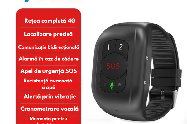 Bratara inteligenta 4G cu buton de panica pentru varstnici, Ceas Smart GPS pentru seniori cu buton SOS, monitorizare sanatate, rezistent la apa IP67, Apel rapid 1-2, Localizare precisa, Dasbo®, apel SIM, vibratii, notificare HR BP, preluare automata.Ai grija de cei dragi chiar si de la distanta. Ceasul inteligent GPS cu conectivitate 4G este creat special pentru seniori si persoane cu nevoi speciale, oferind siguranta, monitorizare si comunicare rapida intr-un design simplu si usor de folosit. ✅ Localizare GPS precisa in timp real ✅ Apel rapid prin tastele 1/2 pentru contact direct cu familia ✅ Buton SOS dedicat pentru situatii de urgenta ✅ Apel vocal bidirectional + raspuns automat ✅ 4G pentru semnal stabil oriunde ✅ Alerta in caz de cadere ✅ Monitorizare puls si tensiune arteriala ✅ Numara pasii si urmareste activitatea zilnica ✅ Rezistenta la apa IP67 potrivit pentru dus, ploaie, stropiri ✅ Memento administrare medicamente ✅ Alerta prin vibratie ✅ Cronometrare vocala Ceasul poate trimite automat alerte familiei in cazul unor pericole si poate ajuta la prevenirea situatiilor critice datorita functiilor de sanatate afisate direct in aplicatie. ? Ce include pachetul • Smartwatch GPS 4G • Curea reglabila confortabila • Statie/cablu de incarcare • Manual de utilizare ? Ideal pentru: • Persoane in varsta • Persoane cu probleme de memorie sau mobilitate • Monitorizare permanenta a sanatatii • Situatii in care siguranta este prioritara Lasa-ti grijile deoparte cu dispozitivul Dasbo Senior Tracker. Acest dispozitiv inteligent poate fi de mare ajutor pentru persoanele in varsta - si te asigura ca membrii familiei tale sunt in siguranta. Este conectat prin 4G si Wi-Fi si dispune de un apel rapid cu o singura tasta. Serviciul bazat pe locatie permite pozitionarea precisa; modulul GPS+Glonass este, de asemenea, integrat. Poti urmari si ajusta dispozitivul prin intermediul unei aplicatii mobile - accesul este usor si fiabil. Este dotat cu senzori care pot monitoriza ritmul cardiac, temperatura corpului si orientarea. Tracker-ul va numara pasii si ii va reaminti proprietarului sa ia medicamente sau sa faca exercitii fizice. De asemenea, va trimite o alerta in caz de cadere. Este un gadget fiabil, cu capacitati de impermeabilitate IP67, alarma de baterie descarcata, cronometrare vocala si un ton de apel special in cazul in care purtatorul se pierde. Este o alegere excelenta pentru grija fata de varstnici! Compatibilitate: Android 8.0 si versiuni ulterioare (smartphone-uri cu suport pentru servicii Google Play), iOS 14.0 si versiuni ulterioare Retea: retea 4G + 2G GSM Metoda de pozitionare: GPS+Glonass+WIFI+LBS Sanatate: ritm cardiac, detectarea temperaturii corpului Memento pentru administrarea medicamentelor, functia de gestionare a sanatatii exercitiilor fizice, numararea pasilor Grad de impermeabilitate IP67 Platforma web/Aplicatie mobila/SMS O cheie SOS pentru ajutor Apel rapid cu o singura tasta Cronometrare vocala Alarma baterie descarcata Functia de sonerie pentru gasirea persoanelor Alarma de cadere