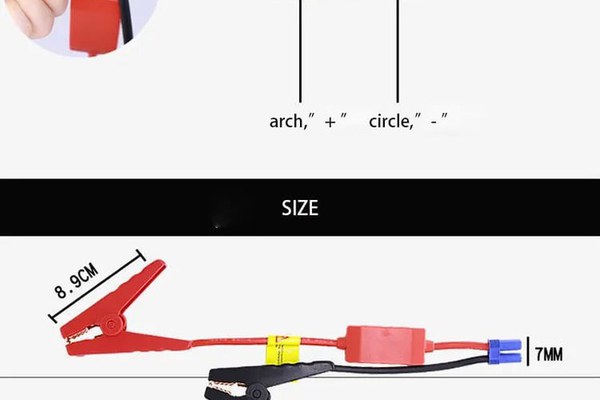 Aceste cabluri auto de 12V sunt proiectate pentru a fi folosite impreună cu un starter și au rolul de a porni o baterie de mașină descărcată sau slabă./nEle pot fi utilizate ca set de cleme de inlocuire pentru cablurile de pornire și sunt compatibile cu majoritatea mărcilor de Startere portabile de 12V./nAceste cabluri au și o protecție impotriva incărcării inverse, asigurand că curentul de incărcare inversă este mai mic de 1A după ce mașina a fost pornită./nSpecificații:/nPort: Carcasa de plastic de culoare albastră cu mufa EC5, potrivită pentru mufa banana de 7 mm./n Lungimea cablurilor: Un cablu roșu (+) de 11 inchi și un cablu negru (-) de 8 inchi./n Dimensiunea cablurilor: 6 mm2/n Conductor: Cupru cositorit/n Tensiune de intrare: 12V/n Temperatura de lucru: Intre 0°C și 60°C/n Potrivite pentru majoritatea starterelor auto portabile de 12V./n