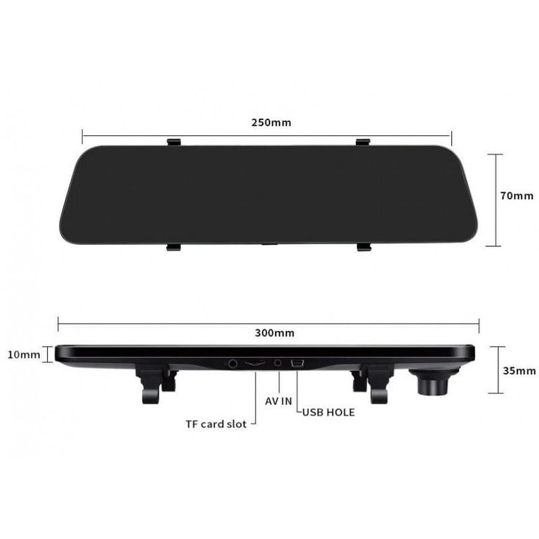 Specificatii: 12.0 Inch Touch IPS Screen 2.5D Sticla 2.5D, Usor Curbata la Margini, Anti-Reflectii, Anti-Amprente Procesor HISILICON Camera: F.2.2, Fata + Spate, 6 lentile + 4 lentile Unghi: Fata: 170°; Spate: 140° Rezolutie foto: 12MP CodareVideo: MJPG Baterie: Baterie interna de foarte mici dimensiuni. Nu suporta operarea dispozitivului cu bateria integrata. Bateria integrata este pentru salvarea setarilor, a datei si orei. Stocare: MicroSD, clasa 10, max 64GB (nu este inclus) Camera Spate: Lungime cablu 6m Inregistrare: Dual (Fata + Spate) Fata: 2560*1440P@30FPS; Spate: 1920*1080P@30FPS; Filmare pe timp de noapte Alimentare: 12V. Atentie, nu folositi pe 24V! Senzor Gravitatie Functii: Detectarea miscarii - Inregistreaza automat atunci cand detecteaza miscare. Inregistrare Ciclica Mod Parcare - Ecranul va sta inchis, iar camera va porni automat si va inregistra momentul cand sesizeaza un soc. Afisare Data/Ora Filmare WDR PIP - Picture in Picture, permite vizualizarea ambelor camere simultan ON/OFF Automat Reamintire Aprindere Faruri Mod Vizualizare - 1:1 Fata-Spate, Camera Fata, Camera Spate Mod Marsarier - Afiseaza automat camera din spate pe intreg ecranul Senzor-G - Salveaza automat inregistrarea in caz de accident Atentie! Functia de Parcare functioneaza doar cat timp Camera este alimentata, si este setat modul de parcare. Pentru asta este necesar ca masina sa furnizeze permanent curent in priza de 12V. Daca masina dumneavoastra nu suporta acest lucru, este recomandat sa instalati un adaptor tip BUCK Line intr-un service autorizat. Continut Pachet: 1 x Oglinda Dubla 1 x Incarcator 1 x Manual (engleza) 2 X Suporti de prindere 1 X Cablu 6m 1 X Camera 1080P Marsarier