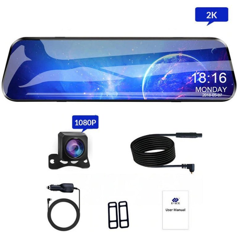 Camera Auto Tip Oglinda E-ACE A38, Dubla, 12" Inch, 2K, IPS, Touch Screen, 1440P, Night Vision, PIP