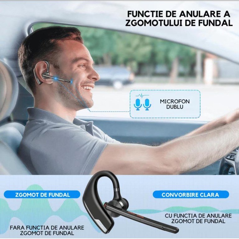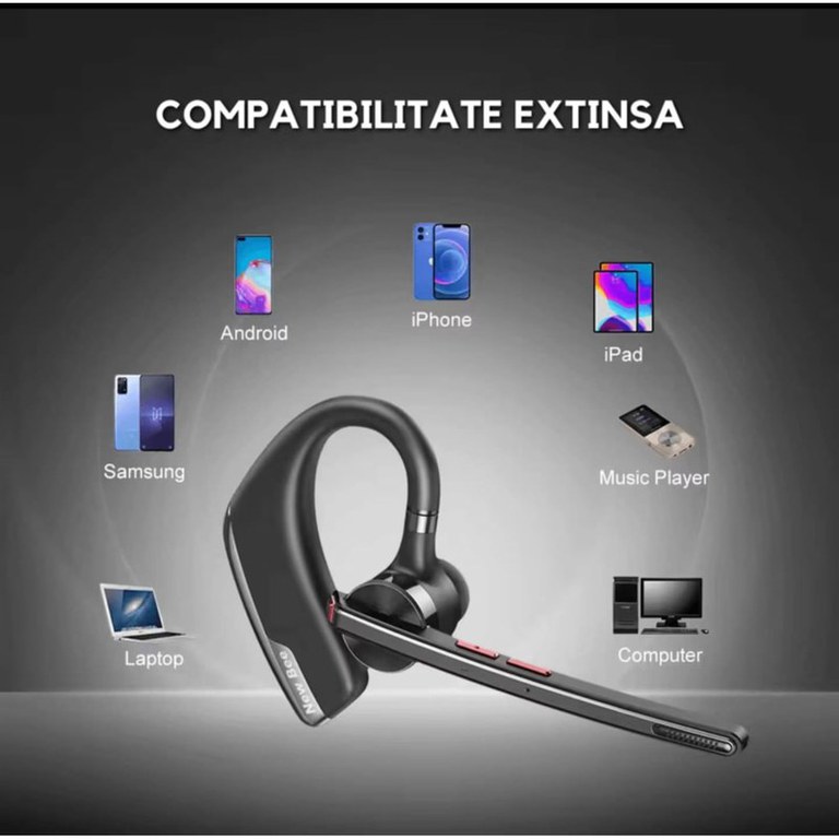Casca Bluetooth Wireless New Bee, Baterie 60 ore 500mAH, Cu microfon dublu de reducere a zgomotului CVC 8.0