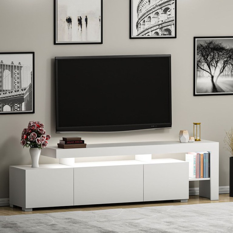Comoda tv, Hanah Home, pal melaminat, alb, 192x53x37 cm, led