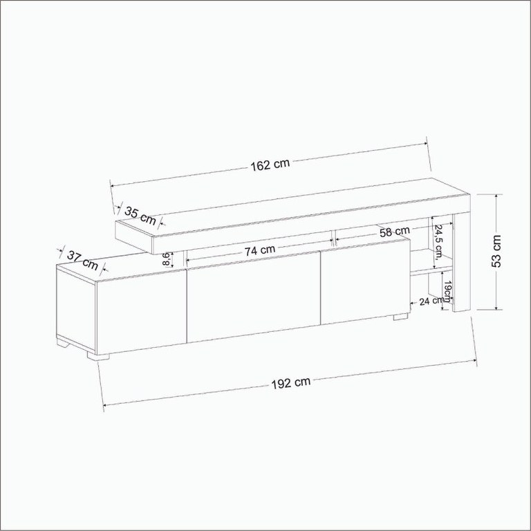Transformă-ți spațiul de locuit cu suportul TV modern și elegantVă prezentăm suportul nostru de televizor uimitor, care vă va ridica spațiul de locuit la noi înălțimi de eleganță și rafinament. Confecționat cu plăci aglomerate acoperite cu 100% melamină, acest suport tv nu este doar durabil, ci emană și un sentiment de lux. Designul elegant și contemporan, cu liniile sale curate și culoarea albă, adaugă o notă de modernitate oricărei încăperi. Iluminați-vă zona de divertisment cu lumini cu leduri.Îmbunătățiți-vă experiența de vizionare cu ajutorul luminilor LED încorporate, care creează o ambianță captivantă. Fie că vă vizionați filmele preferate sau găzduiți o adunare, luminile cu leduri vor crea atmosfera perfectă pentru orice ocazie. Stocare amplă și versatilitateCu numeroase rafturi și un raft spațios pentru televizor, acest suport oferă o depozitare amplă pentru toate dispozitivele media, DVD-urile și obiectele decorative. De asemenea, suportul tv poate fi fixat cu ușurință pe perete, asigurând stabilitate și siguranță. Detalii tehnice:Material: Material: Panou aglomerat de particule acoperit cu melamină 100%.Grosime: 18 mmBordură din PVC pentru o durabilitate sporităLumini LED incluse pentru o ambianță captivantăDimensiuni: Lățime: 192 cm, Înălțime: 53 cm, Adâncime: 37 cmDimensiunea raftului TV: Lățime: 162 cm, Înălțime: 53 cm, Adâncime: 35 cmCuloare: AlbÎmbunătățiți-vă spațiul de locuit cu acest suport TV modern și versatil. Comandați acum și transformați-vă casa într-un paradis elegant.