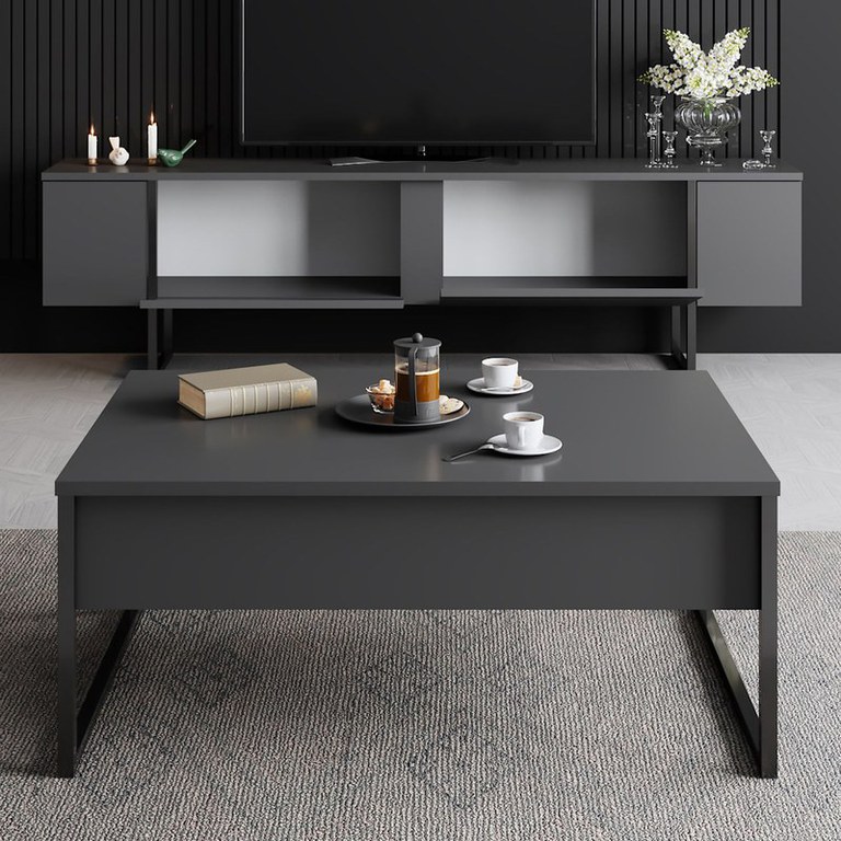 Îmbunătățește-ți spațiul de locuit cu suportul TV elegant și funcționalTransformați-vă camera de zi într-un centru de divertisment captivant cu suportul nostru tv excepțional. Conceput pentru a vă ridica experiența de vizionare, acest suport tv combină perfect stilul și funcționalitatea. Durabilitate și eleganță de neegalatConfecționat din panouri de particule acoperite cu 100% melamină, acest suport tv oferă durabilitate și longevitate de neegalat. Grosimea de 18 mm asigură o structură robustă și fiabilă, care va rezista testului timpului. Designul său elegant și modern, cu o combinație de culori antracit și negru, adaugă o notă de eleganță oricărui spațiu de locuit.Spațiu amplu de depozitare pentru elementele esențiale de divertismentCu o lățime de 180 cm, o adâncime de 30 cm și o înălțime de 50 cm, acest suport pentru televizor oferă un spațiu amplu pentru a vă găzdui televizorul, consolele de jocuri, sistemele de sunet și alte elemente esențiale pentru divertisment. Picioarele metalice nu numai că adaugă o notă contemporană, dar oferă și stabilitate și suport excelent. Crearea unui mediu fără dezordineSpuneți adio cablurilor dezordonate și spațiilor de locuit dezordonate. Acest suport pentru televizor dispune de un sistem de gestionare a cablurilor încorporat, permițându-vă să vă păstrați cablurile organizate și departe de ochii dvs. Bucurați-vă de un mediu curat și organizat care vă îmbunătățește experiența generală de vizionare. Detalii tehnice:Tip de produs: Stand TVMaterial: Panou de particule de lemn 100% acoperit cu melaminăGrosime: 18mmPicioare: MetalLățime: 180cmAdâncime: 30cmÎnălțime: 50cmCuloare: antracit și negruModernizează-ți camera de zi cu suportul nostru de televizor elegant și funcțional. Experimentați combinația perfectă de durabilitate, eleganță și spațiu amplu de depozitare. Comandați acum și transformați-vă zona de divertisment într-un rai captivant și organizat.
