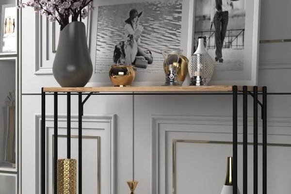 Consola, Hanah Home, pal melaminat, negru si pin atlantic, 90x26x80 cm