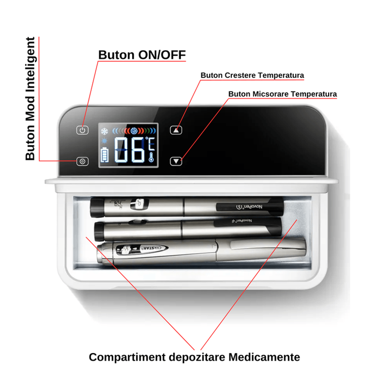 /nFrigider Mini Medical Pentru Insulina, Medicamente, Frigider mic, Capacitate Racire 0-18°C, Dimensiuni frigider 215 x140 x60 mm, Portabil, Ideal pentru Masina, Calatorie, Avion, Alb/nCaracteristici Principale/n+ Capacitate generoasa pentru diferite medicamente/n+ Include alarma pentru amintire/n+ Dimensiune mica, dar incapatoare/n /nSpecificatii:/nDimensiuni exterioare: 215 x 14 x 6 mms/nDimensiuni interioare: 190 x 60 x 30 mm/nCuloare: Alb/nTensiune: 5V/12V/220V/nPutere: 5W/nTemperatura interioara: 0- 18°C/n/n/n/n/n