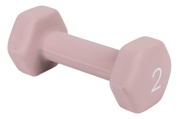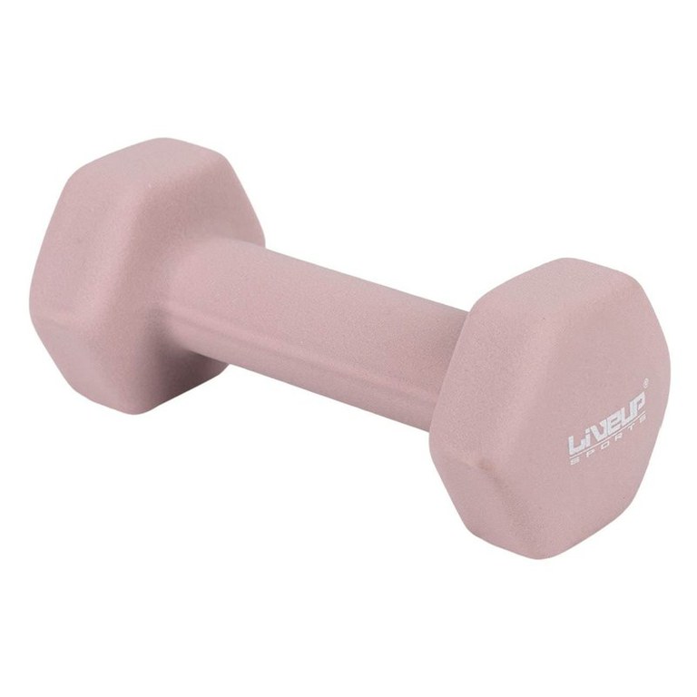 Gantera fitness liveup, 2 kg, culoare roz pudra, material neopren si fier