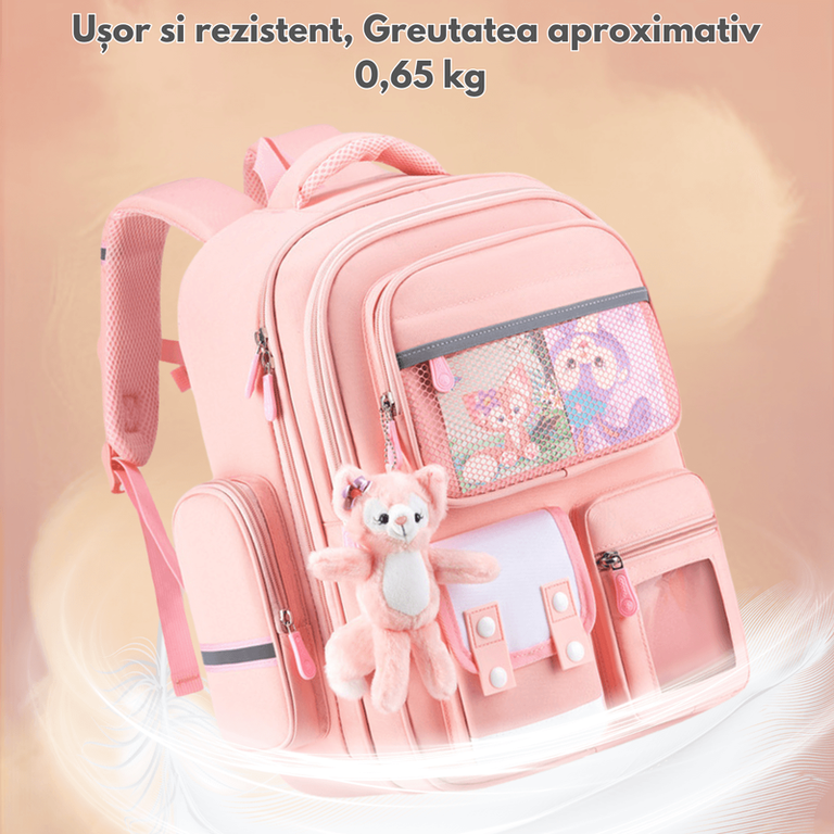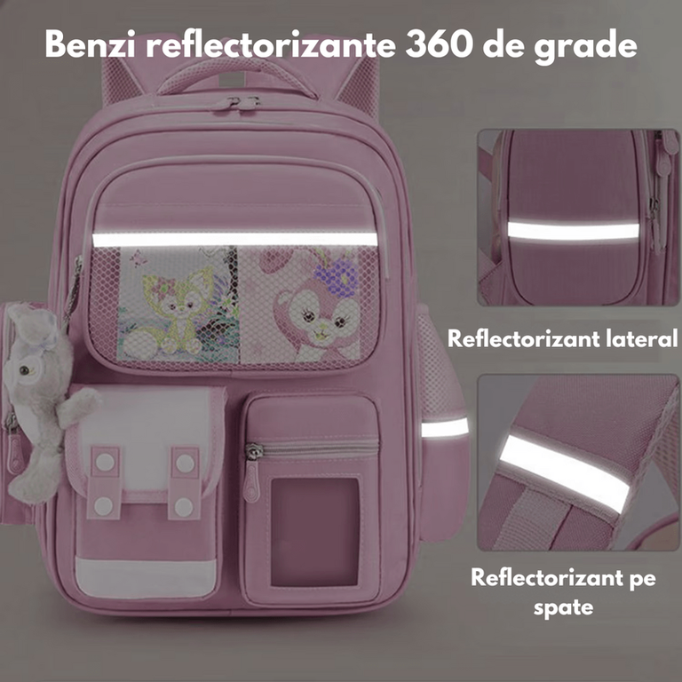 Rucsac ergonomic pentru copii – Usor, spatios si sigur Descopera un rucsac revolutionar, creat special pentru confortul si sanatatea copiilor. Greutatea redusa de doar 650g (aproximativ cat doua mere) reduce oboseala zilnica, fiind ideal pentru scoala si activitatile zilnice. Caracteristici principale: Greutate redusa: doar 650g, ideal pentru transport zilnic fara efort. Material antibacterian si rezistent la apa: protectie impotriva bacteriilor si stropilor de apa, ideal in zilele ploioase. Protectie lombara si anti-oboseala: spatele este prevazut cu pernite 3D si un design ergonomic ce protejeaza coloana vertebrala. Design reflectorizant 360°: pentru vizibilitate pe timp de noapte, asigurand siguranta copilului in trafic. Capacitate mare: multiple compartimente pentru organizarea eficienta a cartilor, rechizitelor si altor accesorii scolare. Confort sporit: bretelele largite, captusite cu spuma si plasa respirabila, ofera o distributie uniforma a greutatii, evitand presiunea pe umeri. Design usor de manevrat: ideal pentru utilizare zilnica, cu fermoare rezistente si buzunare laterale pentru sticle de apa sau umbrele. Perfect pentru scoala, calatorii si activitati zilnice Cu un design vesel si functional, rucsacul asigura organizarea eficienta a tuturor obiectelor personale ale copilului. Este disponibil intr-o gama larga de culori si stiluri, fiind potrivit atat pentru fete, cat si pentru baieti. Alege siguranta si confortul cu un rucsac usor, spatios si creat pentru sanatatea copilului tau! Dimensiuni: 42 x 30 x 20 cm – suficient de spatios pentru a depozita carti, rechizite si alte obiecte esentiale zilnice. Material: Rucsacul este realizat din panza Oxford impermeabila si poliester, oferind protectie eficienta impotriva ploii si stropilor accidentali. Design ergonomic: Daca copiii transporta multe obiecte in rucsac, curelele de sustinere din laterale ofera stabilitate. Curelele de umar in forma de S, ingrosate si latite, impreuna cu buretele de decompresie de 10 mm, reduc presiunea asupra umerilor in timpul mersului. Catarama de echilibru si suport pentru spate: Catarama de piept imbunatatita reduce presiunea asupra corpului, iar suportul pentru spate 3D cu rebound ajuta la mentinerea echilibrului si protejarea coloanei vertebrale. Cadou perfect: Acest rucsac pentru fete este ideal pentru scoala primara, gimnaziu sau calatorii. Designul versatil il face potrivit atat pentru copii, cat si pentru adolescenti sau femei. Un cadou excelent si practic pentru orice ocazie. Specificatii: Material: Panza Oxford si poliester Culoare: Roz Dimensiuni: 42 x 30 x 20 cm Potrivit pentru: Clasele 3-6
