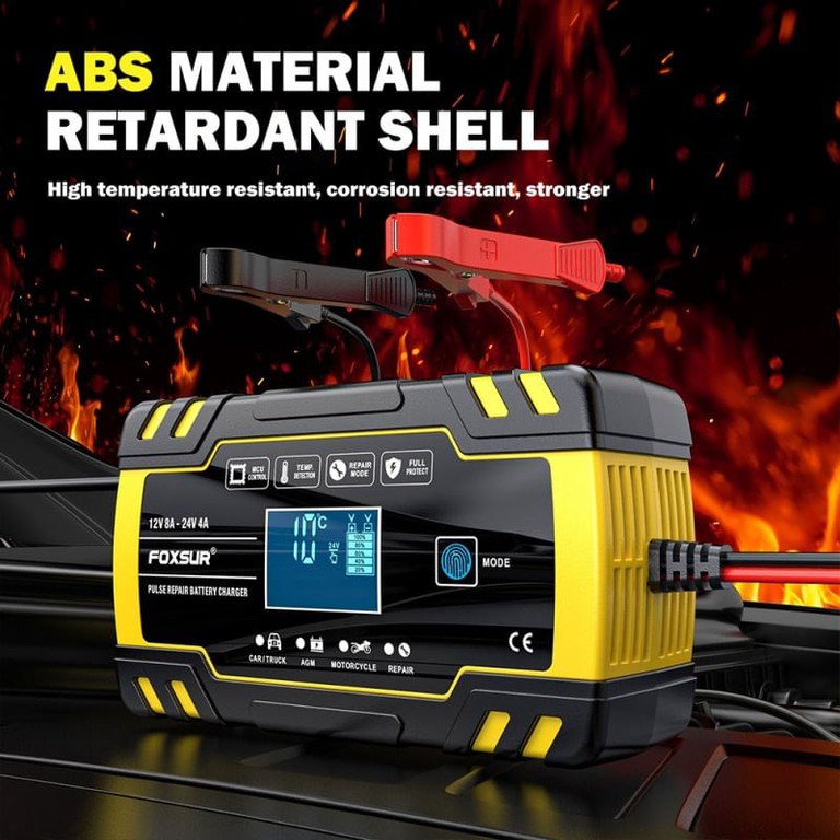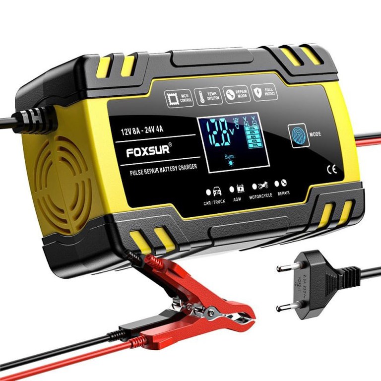Incarcator Baterie Auto Cu Microprocesor Foxsur B0228-Y, 12/24V, 4/8A, Display LCD, Functie De Reparare Cu Puls