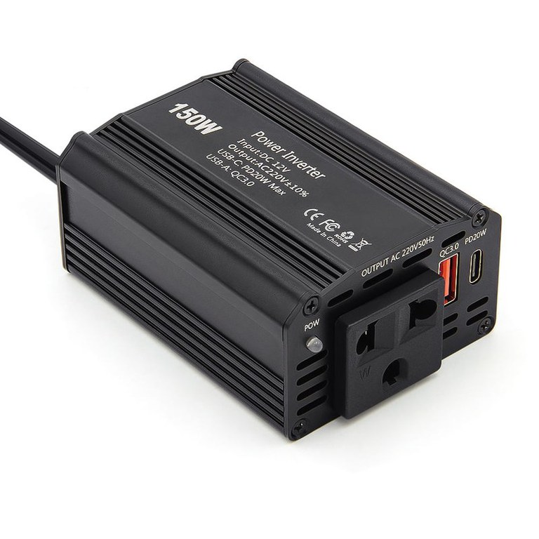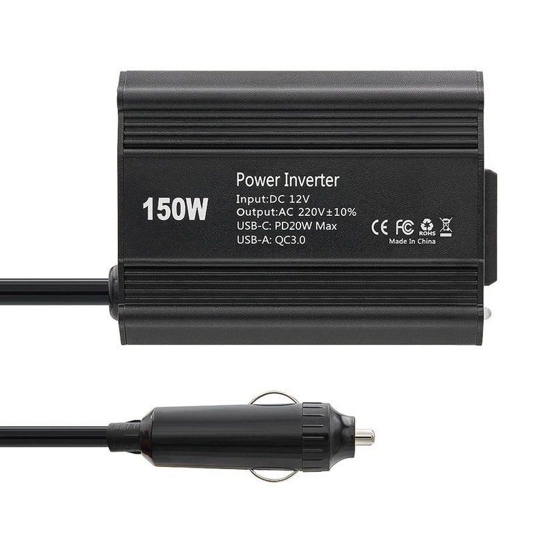 Acest invertor de putere auto este un dispozitiv compact si eficient, conceput pentru a transforma tensiunea continua de 12V DC de la bateria unui vehicul în tensiune alternativa de 220V AC, oferind o solutie portabila de alimentare pentru diverse aparate si dispozitive electronice. Cu functii avansate de încarcare rapida prin USB-C si USB-A, este ideal pentru utilizare în calatorii, camping sau la locul de munca.Caracteristici PrincipalePutere Nominala: 150W, potrivita pentru alimentarea laptopurilor, încarcatoarelor, ventilatoarelor mici sau altor dispozitive electrice.Porturi USB Multiple:USB-C: Power Delivery (PD) de pâna la 20W, ideal pentru încarcarea rapida a dispozitivelor moderne.USB-A: Quick Charge 3.0 (QC3.0) pentru încarcare rapida a telefoanelor mobile, tabletelor si altor dispozitive compatibile.Priza AC Universala: Accepta stecher standard european pentru alimentarea dispozitivelor electrice.Afisaj Digital: Ofera informatii despre tensiunea de functionare, pentru a monitoriza performanta în timp real.Sistem de Ventilatie: Ventilator integrat pentru racirea dispozitivului si prevenirea supraîncalzirii.Specificatii TehniceTensiune de intrare: 12V DCTensiune de iesire: 220V ±10% AC (50Hz)Putere maxima: 150WPorturi USB:USB-C: PD20W maxUSB-A: QC3.0Dimensiuni compacte: Usor de transportat si utilizat în diverse locatii.Certificari: CE, FCC, RoHS, pentru siguranta si calitate.AplicatiiCalatorii: Alimenteaza dispozitivele esentiale în timpul deplasarilor.Camping: Perfect pentru alimentarea luminilor, ventilatoarelor sau altor dispozitive de mici dimensiuni.Locuri de munca mobile: Ideal pentru profesionisti care au nevoie de o sursa de energie portabila.AvantajeTransforma curentul continuu (DC) în curent alternativ (AC), fiind o solutie portabila pentru situatii fara acces la reteaua electrica.Porturile USB cu functii de încarcare rapida economisesc timp si sunt compatibile cu cele mai moderne dispozitive.Designul compact si usor îl face ideal pentru utilizare zilnica sau ocazionala.Acest invertor de putere de 150W este solutia perfecta pentru cei care au nevoie de o sursa de energie sigura si versatila oriunde se afla!
