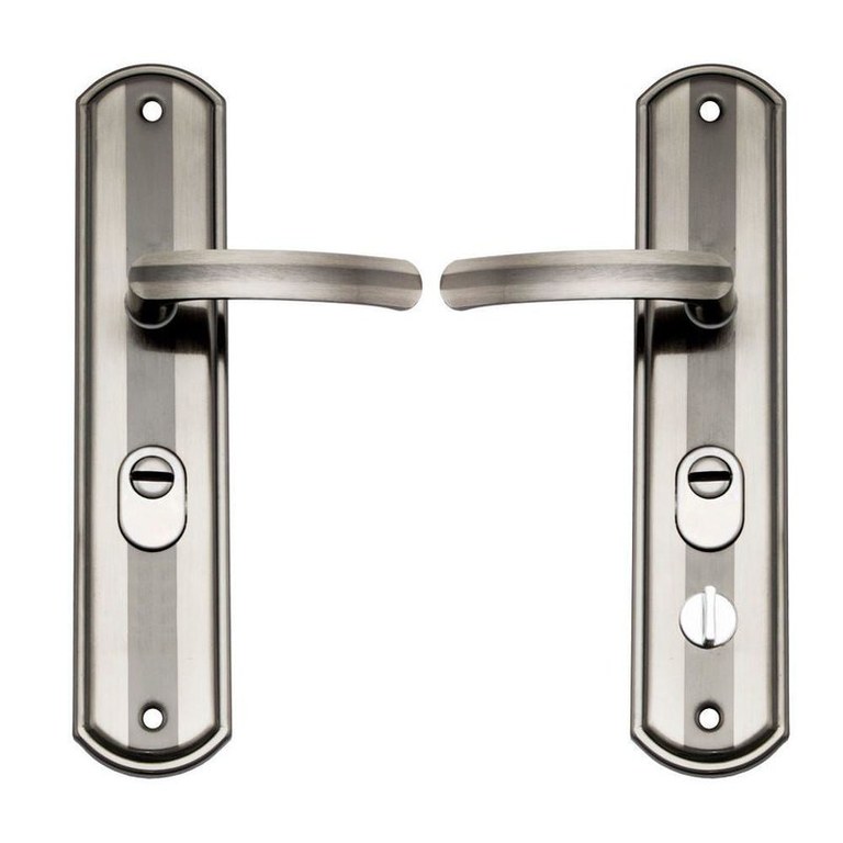 Set maner usa metalica cu broasca, butuc si toate accesoriile de montare.