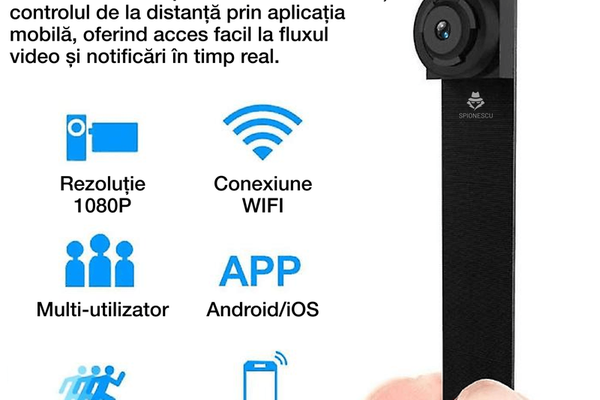 Micro camera ascunsa VD06A combina tehnologia avansata cu designul compact, oferind functii de supraveghere de inalta calitate. Cu rezolutie 1080P, conectivitate Wi-Fi pentru control de la distanta, detectare a miscarii si vedere nocturna, aceasta camera asigura monitorizarea discreta si eficienta a oricarui spatiu. /nIata de ce ar trebui achizitionat:Monitorizare discreta: Microcamera ascunsa VD06A se integreaza perfect in orice mediu, oferind supraveghere discreta fara a atrage atentia./nDetectare a miscarii: Activarea automata a inregistrarii si notificarilor atunci cand este detectata miscare asigura o supraveghere eficienta si proactiva./nVedere nocturna: Cu functia de vedere nocturna, camera capteaza imagini clare chiar si in intuneric, asigurand o protectie continua./nConectivitate Wi-Fi: Permite monitorizarea in timp real si controlul camerei de la distanta prin intermediul aplicatiei mobile, oferind acces convenabil si flexibil./nAutonomie de 5 ore: Echipata cu o baterie de 1000 mAh, camera ofera o autonomie de pana la 5 ore, ideala pentru utilizare prelungita fara intreruperi./n/nMonitorizeaza si gestioneaza camera de oriunde, folosind aplicatia mobila dedicata. Conexiunea WiFi permite acces instantaneu la fluxul video live, oferindu-ti o vedere clara si detaliata a spatiului monitorizat. Tehnologia cloud integrata iti permite sa vizualizezi si sa controlezi inregistrarile video de la distanta, asigurand un acces convenabil si flexibil. Indiferent daca esti acasa sau in deplasare, poti verifica si ajusta setarile camerei, primi notificari in timp real si vizualiza capturile direct de pe telefonul tau. Acest control complet si accesibil te ajuta sa ramai conectat la ceea ce conteaza pentru tine, oferindu-ti liniste si securitate suplimentara./nCu rezolutia Full HD 1080P, aceasta camera garanteaza o calitate exceptionala a imaginii, oferind detalii clare si precise pentru fiecare inregistrare. Indiferent daca doresti sa monitorizezi intalniri importante, sa supraveghezi spatii sau sa capturezi momente speciale, aceasta rezolutie iti asigura o vizualizare neteda si detaliata. Camera suporta vizualizarea la distanta atat prin WiFi, cat si prin modul Hotspot, ceea ce iti permite sa accesezi fluxul video in timp real, direct de pe telefonul tau mobil, folosind aplicatia dedicata. Acest lucru inseamna ca poti monitoriza si controla camera de oriunde ai acces la internet, oferindu-ti flexibilitate maxima si control total asupra inregistrarilor tale. Fie ca esti acasa sau in deplasare, poti ramane conectat si informat despre ceea ce se intampla in zona monitorizata. Rezolutia 1080P combinata cu optiunile avansate de conectivitate face din aceasta camera un instrument indispensabil pentru securitatea si supravegherea de inalta calitate./n/nCamera noastra este echipata cu un unghi de vizualizare de 90°, care iti permite sa capturezi un camp vizual extins si detaliat. Acest unghi larg este ideal pentru supravegherea zonelor mari, oferind o acoperire cuprinzatoare si reducand necesitatea de a folosi mai multe camere pentru a monitoriza aceeasi regiune. Prin acest unghi, vei putea vedea mai multe detalii dintr-o singura pozitie, asigurand o monitorizare eficienta si clara. Fie ca vrei sa supraveghezi o incapere mare, un birou aglomerat sau orice alt spatiu, acest unghi larg te ajuta sa obtii o imagine completa si precisa, asigurandu-te ca nu vei pierde niciun detaliu important. Cu aceasta functionalitate, camera devine un instrument esential pentru securitate si monitorizare in orice mediu./nConexiunea WiFi faciliteaza monitorizarea si controlul camerei de la distanta prin intermediul aplicatiei mobile. Aceasta iti ofera acces instantaneu la fluxul video si notificari in timp real, permitandu-ti sa ramai conectat si sa gestionezi camera de oriunde te-ai afla. Indiferent daca esti acasa sau in miscare, vei putea verifica si ajusta setarile camerei fara efort, asigurandu-te ca nu pierzi niciun moment important./n/nVederea nocturna a camerei asigura imagini clare si detaliate chiar si in conditii de intuneric complet. Echipata cu tehnologie avansata de infrarosii, camera poate captura imagini si videoclipuri de inalta calitate in conditii de lumina scazuta. In plus, sistemul de notificari instantanee te informeaza imediat ce detecteaza miscare, oferindu-ti alerte precise pentru a putea reactiona rapid. Astfel, vei avea o monitorizare continua si eficienta, protejandu-ti spatiul chiar si in cele mai intunecate momente./nCamera este echipata cu un senzor avansat de detectare a miscarii care poate functiona eficient pana la o distanta de 6 metri. Aceasta capacitate permite monitorizarea extinsa a zonei de interes, asigurand ca orice miscare in campul vizual al camerei este capturata si inregistrata. Indiferent de conditiile de iluminare sau de rapiditatea miscarii, camera se adapteaza pentru a oferi o supraveghere detaliata, ajutandu-te sa mentii un control constant asupra spatiului tau. Cu o reactie prompta si acoperire ampla, te poti baza pe camera ta pentru a detecta si documenta orice activitate relevanta./nCaracteristici:/nRezolutie: 1080P/nFormat video: AVI/nUnghi de vizualizare: 90°/nDistanta de captare a miscarii: 6 metri pe linie dreapta/nIluminare minima: 1 LUX/nCapacitate baterie: 1000 mAh/nFormat comprimat: H.264/nGama de inregistrare a sunetului: 5 m²/nConsum de energie: 260 mA/3.7V/nTemperatura de stocare: -20-80°C/nTemperatura de operare: -10-60°C/nUmiditate de operare: 15-85% RH/nTip card de memorie: micro SD/TF pana la 32GB (cardul micro SD nu este inclus)/nSoftware recomandat pentru redare: VLCPlayer / SMPlayer/nSistem de operare pentru computer: Windows/Mac OS X/nSistem de operare pentru telefon mobil: iOS doar/nBrowser web: IE7 si versiuni ulterioare, Chrome, Firefox, Safari etc./nAchizitioneaza acum camera de securitate ascunsa! Perfecta pentru protejarea masinii, monitorizarea copiilor, si mai mult./n*Acest produs include taxa de timbru verde in valoare de: 0.15/n /n