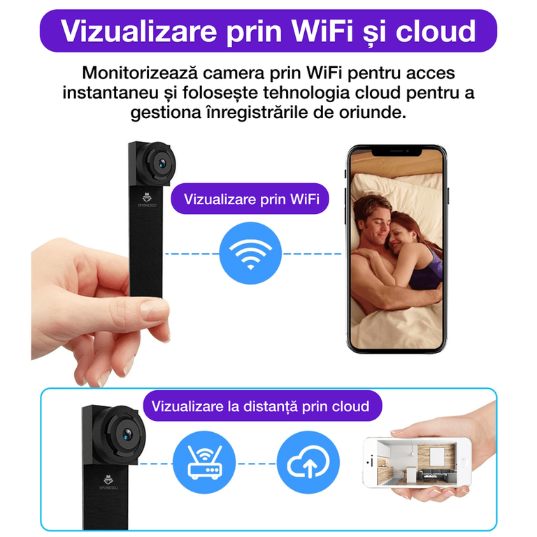 Micro camera ascunsa, VD06A, WIFI, detectarea miscarii, vedere nocturna, 1080P, Android/iOS, autonomie 5 ore