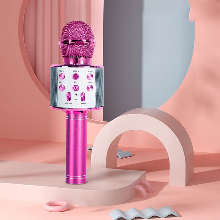 Microfon Wireless Karaoke MRG MWS858, Bluetooth, Reincarcabil, Boxa, Roz