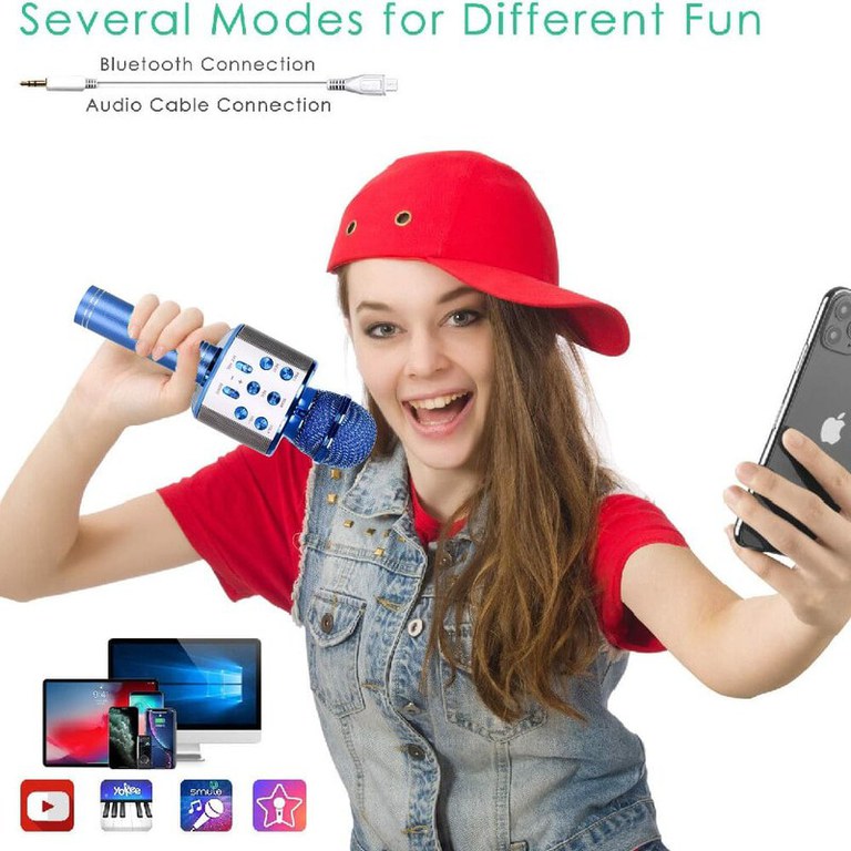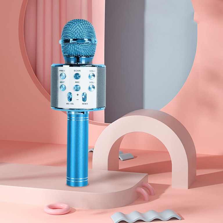 Microfon Wireless Karaoke MRG MWS858, Reincarcabil, Boxa, Albastru