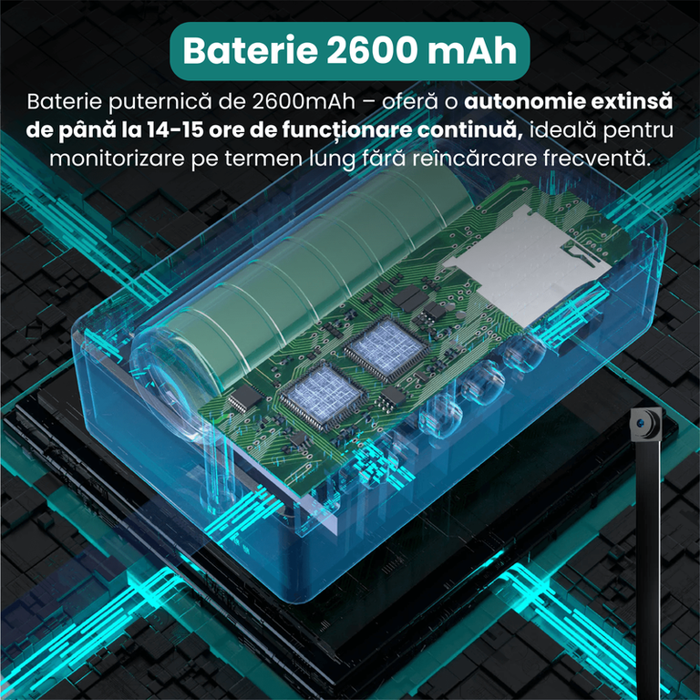 Descopera o camera de supraveghere mini inteligenta si versatila, ideala pentru cei care cauta discretie, portabilitate si performanta. /nIata de ce ar trebui achizitionat:/nDiscreta si portabila – design ultra-compact (29 cm lungime, 2.5 cm latime, 12 g) perfect pentru ascundere in orice spatiu sau pentru purtat in rucsac/geanta/nRezolutie Full HD 1080P – surprinde imagini clare si detaliate, ideale pentru monitorizare eficienta acasa, la birou sau in masina/nBaterie puternica 2600mAh – ofera pana la 14-15 ore de functionare continua fara reincarcare/nControl de la distanta – telecomanda wireless cu raza de peste 8 metri pentru pornire/oprire rapida si discreta a inregistrarii/nDetectie miscare inteligenta – porneste automat inregistrarea doar cand detecteaza miscare, economisind spatiu si energie/nInregistrare in bucla – functia de suprascriere automata permite capturi continue fara grija spatiului de stocare/nFunctioneaza fara Wi-Fi sau aplicatie – conectare directa la laptop pentru redare instant, fara accesorii sau setari complicate/nSuporta card microSD pana la 128GB – stocheaza ore intregi de inregistrari in siguranta/nVersatilitate maxima – ideala pentru utilizare acasa, la birou, in masina, in calatorii sau pentru proiecte DIY/n/nDetectia miscarii este o functie esentiala care transforma aceasta camera intr-un dispozitiv inteligent si eficient pentru monitorizare. Inregistrarea video se activeaza automat imediat ce este detectata orice miscare in cadru, eliminand astfel nevoia de inregistrare continua si economisind atat energie, cat si spatiu de stocare. In loc sa fie capturate ore de imagini statice, camera va salva doar momentele in care are loc o activitate reala. Aceasta functie este ideala pentru supravegherea locuintei, biroului sau masinii, oferind liniste si siguranta fara interventii suplimentare./nCamera este echipata cu un senzor de imagine performant care permite captarea de inregistrari video in format Full HD. Imaginile sunt clare, bine definite si cu detalii precise, indiferent de scenariul in care este folosita: supraveghere de securitate, inregistrarea momentelor importante din viata de zi cu zi sau documentarea unor activitati personale sau profesionale. Calitatea ridicata a imaginii iti permite sa surprinzi tot ce conteaza, cu un plus de claritate si realism./n/nCamera vine echipata cu o telecomanda practica ce permite activarea sau oprirea inregistrarii de la o distanta de peste 8 metri. Aceasta functie iti ofera control complet fara sa fii nevoit sa atingi dispozitivul, fiind ideala pentru situatii in care vrei sa actionezi rapid si discret. Este solutia perfecta pentru momente in care fiecare secunda conteaza, fie ca te afli intr-un spatiu public, la birou sau intr-un mediu unde nu vrei sa atragi atentia./nDatorita dimensiunilor sale reduse si designului minimalist, aceasta camera poate fi transportata cu usurinta in rucsac, geanta sau chiar montata in locuri greu de observat. Este ideala pentru capturi spontane sau monitorizare discreta in timpul calatoriilor, plimbarilor prin oras sau in activitatile de zi cu zi. Fara sa atraga atentia, iti permite sa surprinzi imagini naturale si autentice, exact asa cum se intampla ele in realitate./n/nCu o lungime de doar 29 cm, latime de 2.5 cm si o greutate de numai 12 grame, aceasta camera este construita special pentru portabilitate si utilizare discreta. Dimensiunile reduse o fac usor de ascuns sau de integrat in spatii restranse, fie ca este vorba de casa, birou, masina sau un rucsac de calatorie. Fiind atat de usoara si subtire, poate fi purtata oriunde fara sa incomodeze, oferindu-ti libertatea de a monitoriza in mod eficient fara sa atragi atentia./nNu este nevoie de retea wireless sau aplicatii complicate. Camera se conecteaza direct la laptop prin cablu si reda instant inregistrarile, fara sa fie necesar un cititor de card sau configurari suplimentare. Este solutia ideala pentru cei care cauta o utilizare simpla si eficienta. De asemenea, poate fi alimentata atat la priza, cat si prin power bank, ceea ce o face perfecta pentru monitorizare continua, 24 din 24, in orice locatie./nCaracteristici:/nRezolutie video: Full HD 1080P/nBaterie reincarcabila: 2600mAh/nDetectie miscare inteligenta/nInregistrare in bucla automata/nTelecomanda wireless >8 m/nFunctioneaza fara Wi-Fi/nConectare directa la laptop/nSuporta card microSD pana la 128GB/nGreutate: doar 12g/nDimensiuni: 29 cm x 2.5 cm/nPortabila si discreta/nAlimentare prin priza sau power bank/nVrei o solutie discreta si eficienta pentru supraveghere? Aceasta camera ultra-compacta iti ofera tot ce ai nevoie: imagine clara Full HD 1080P, detectie inteligenta a miscarii, control de la distanta prin telecomanda si autonomie extinsa datorita bateriei de 2600mAh./n*Acest produs include taxa de timbru verde in valoare de:0.15