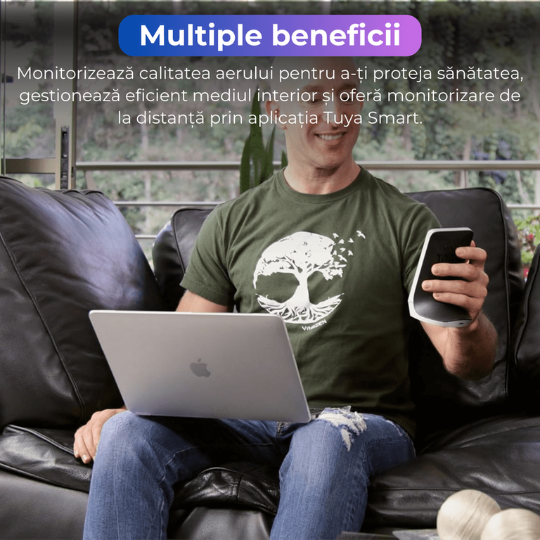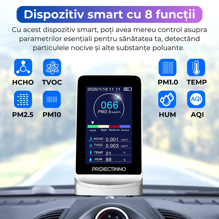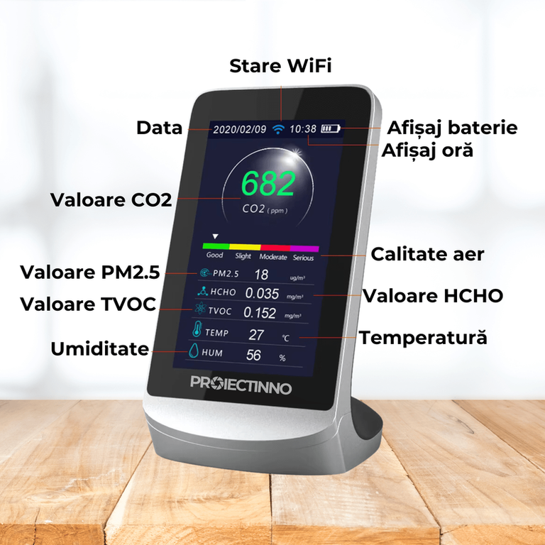 Monitor masurare calitate aer, 8 in 1, Wifi, CO2, TVOC, HCHO, concentratie poluanti PM1.0, PM2.5, Tuya