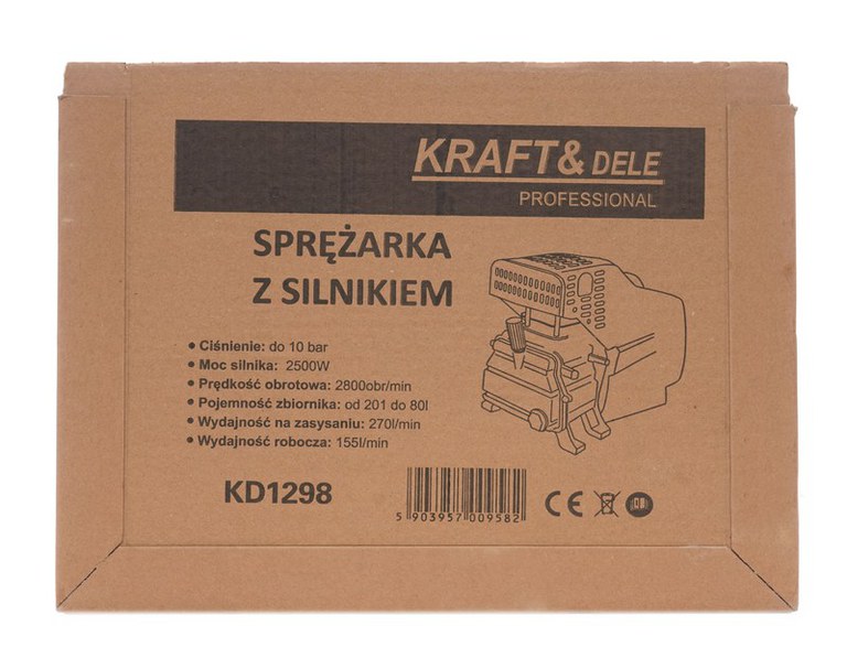 Descriere produs/nPutere si fiabilitate pentru compresorul tau.Motorul de compresor Kraft&Dele KD1298 este piesa de inlocuire ideala pentru compresoarele de aer cu rezervor de 24 litri si presiune maxima de 10 bar. Construit cu materiale durabile si tehnologie moderna, motorul asigura functionare eficienta si durata lunga de viata in conditii de lucru intense./nEste proiectat pentru a mentine un debit de aer constant, oferind performanta fiabila in utilizari profesionale sau casnice./n/nAvantaje structurale/n/n/nPresiune maxima 10 bar – suficienta pentru majoritatea aplicatiilor pneumatice/n/n/nCompatibilitate perfecta cu rezervor de 24 litri/n/n/nMotor electric eficient – ideal pentru ateliere auto, service-uri si utilizari generale/n/n/nProtectie termica automata – previne supraincalzirea si prelungeste durata de viata/n/n/nDesign compact – usor de montat si intretinut/n/n/n/nCaracteristici tehnice/n/n/nCod produs: KD1298/n/n/nBrand: Kraft&Dele/n/n/nTip produs: Motor compresor aer/n/n/nPresiune maxima: 10 bar/n/n/nCompatibilitate: Rezervor 24L/n/n/nTensiune alimentare: 230V / 50Hz/n/n/nPutere: 2.2 kW (3 CP)/n/n/nGreutate: ~8-10 kg (doar motorul)/n/n/n/nUtilizare recomandata/n/n/nInlocuire motor pentru compresoare cu rezervor 24L/n/n/nAteliere auto, vopsitorii, service-uri/n/n/nScule pneumatice, curatare cu aer, umflare/n/n/nAplicatii semi-profesionale sau casnice/n/n/n/nDe ce sa alegi acest produs/nMotorul KD1298 este proiectat pentru performanta continua si eficienta energetica, fiind o alegere excelenta pentru cei care doresc sa reinvie un compresor de 24L fara a investi intr-un aparat complet nou. Asigura fiabilitate, compatibilitate perfecta si costuri reduse de mentenanta./n/nContinut pachet/n/n/n1 x Motor compresor aer KD1298/n/n/n1 x Sistem de conectare si protectie/n/n/n1 x Manual de montaj/n/n/n/n/nReinnoieste-ti compresorul cu motorul KD1298 de la Kraft&Dele – performanta de incredere pentru orice lucrare!