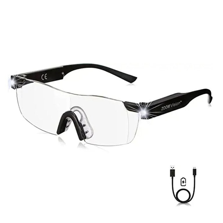 Ochelari cu lupa, zoom vision, led-uri ultra bright, reincarcabili usb, compatible cu ochelari de prescriptie, negru