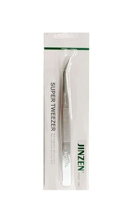 Penseta cu varf curb din otel inoxidabil, antimagnetica, pentru inserat ata, JINZEN, 15cm