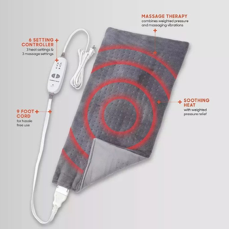 Perna electrica pentru masaj si ameliorarea durerilor, cu 3 trepte de incalzire si 3 de masaj, gri