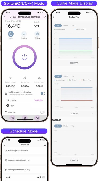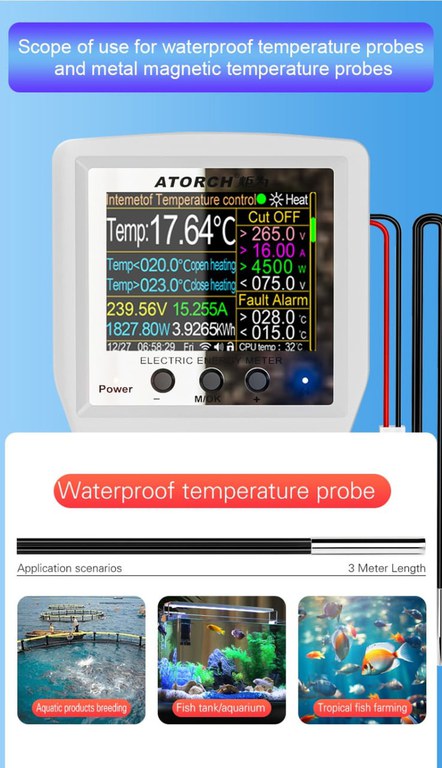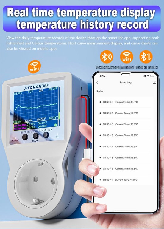 ATORCH S1BWT este solutia ideala pentru monitorizarea inteligenta a consumului de energie si controlul automat al temperaturii in locuinta sau spatiul comercial. Cu conectivitate duala WiFi si Bluetooth, dispozitivul permite control de la distanta prin aplicatia mobila dedicata, oferind acces rapid la toate functiile esentiale. Monitorizezi in timp real tensiunea, curentul, temperatura si consumul total de energie, vizualizand datele printr-un afisaj color generos cu 10 interfete intuitive._x000D_Controllerul ATORCH S1BWT include protectii avansate impotriva supratensiunii, supracurentului si defectiunilor termice, oferind siguranta sporita pentru toate aparatele conectate. Cu functii automate de incalzire si racire, poti seta praguri de temperatura pentru a porni sau opri alimentarea, economisind energie si mentinand confortul dorit._x000D_Dispozitivul permite programarea flexibila a comenzilor. Perfect pentru utilizare acasa sau in medii profesionale, precum magazine, frigidere comerciale, servere sau sisteme HVAC._x000D_Functii principale:_x000D__x000D__x000D_Control de la distanta prin aplicatie (WiFi/Bluetooth)_x000D__x000D__x000D_Monitorizare in timp real: tensiune, curent, temperatura, consum_x000D__x000D__x000D_Afisaj color mare cu 10 tipuri de interfete grafice_x000D__x000D__x000D_Programare automata pentru incalzire si racire_x000D__x000D__x000D_Alarme pentru tensiune, curent si temperatura_x000D__x000D__x000D_Calcul personalizat al costurilor de energie_x000D__x000D__x000D_Compatibil Android pentru Bluetooth, iOS si Android pentru WiFi_x000D__x000D_Lungime cablu 3m_x000D__x000D_ATORCH S1BWT transforma orice aparat intr-un dispozitiv smart, asigurand control complet, economie si siguranta maxima._x000D__x000D_