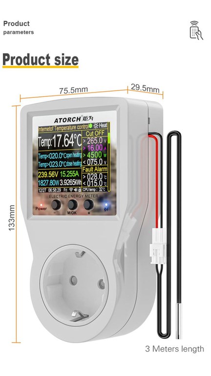 Priza inteligenta si Controller smart temperatura si consum energie ATORCH S1BWT, WiFi, Bluetooth
