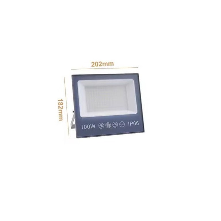 Proiector cu LED-uri de 100W, 10000LM, pentru exterior sau interior, rezistent la apa, IP66, pentru garaj, gradina, alee, din sticla mata anti-orbireIluminati spatiile exterioare si interioare cu eficienta si stil folosind proiectorul LED de 100W, 10000 lumeni, conceput pentru a oferi o lumina puternica si clara in orice conditii. Acest proiector este solutia ideala pentru iluminarea garajelor, gradinilor, aleilor sau altor spatii datorita designului sau robust si performant.Caracteristici:Putere mare de iluminare de 100W si flux luminos de 10000LM: Asigura o iluminare puternica, oferind vizibilitate maxima pe timpul noptii, fiind ideal pentru spatiile mari.Sticla mata anti-orbire: Difuzorul de sticla mata minimizeaza stralucirea si ofera o lumina uniforma si confortabila, reducand oboseala ochilor si evitand efectul de orbire.Rezistenta la apa si praf, standard IP66: Designul impermeabil protejeaza proiectorul impotriva conditiilor meteo nefavorabile, facandu-l potrivit atat pentru utilizarea in exterior, cat si in interior.Constructie durabila si robusta: Fabricat din materiale de inalta calitate, proiectorul este rezistent la impact si coroziune, fiind ideal pentru utilizarea pe termen lung in mediul exterior.Utilizare versatila: Perfect pentru iluminarea garajelor, curtilor, gradinilor, aleilor, parcarilor sau altor spatii care necesita o sursa de lumina puternica si fiabila.Montaj simplu si ajustabil: Sistemul de montaj usor permite ajustarea unghiului de iluminare pentru a directiona lumina exact acolo unde este nevoie, asigurand o acoperire eficienta a spatiului.Specificatii tehnice:Putere: 100WFlux luminos: 10000 lumeniRezistenta la apa: IP66Material: Carcasa din aluminiu cu sticla mata anti-orbireCuloare: NegruTip LED: SMD de inalta eficientaAlimentare: 220-240VTemperatura de functionare: -25°C pana la 45°CAvantaje:Eficienta energetica ridicata: Consumul redus de energie comparativ cu alte surse de iluminare asigura economii semnificative la factura de curent.Iluminare instantanee: Nu necesita timp de incalzire, oferind lumina maxima imediat dupa pornire.Durata de viata lunga: LED-urile au o durata de viata extinsa, reducand costurile de intretinere si inlocuire.Utilizari recomandate:Garaj si atelier: Ofera o iluminare puternica si sigura pentru activitatile din garaj sau spatiile de lucru.Gradina si curte: Ideal pentru iluminarea decorativa sau functionala a gradinii si curtii, sporind siguranta si estetica.Alei si parcari: Creste vizibilitatea si siguranta in zonele de trecere sau parcare.Spatii comerciale: Potrivit pentru iluminarea fatadelor sau vitrinelor, atragand atentia si asigurand vizibilitate sporita.Cu proiectorul LED de 100W si 10000LM, aveti la dispozitie un instrument de iluminare versatil, eficient si durabil, care va transforma orice spatiu intunecat intr-unul perfect iluminat. Ideal pentru utilizari multiple, atat la interior, cat si la exterior, acest proiector reprezinta alegerea ideala pentru cei care doresc calitate si performanta.