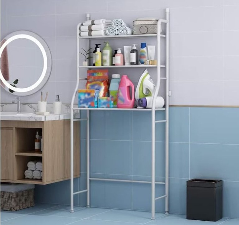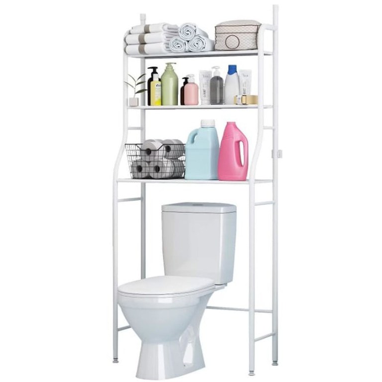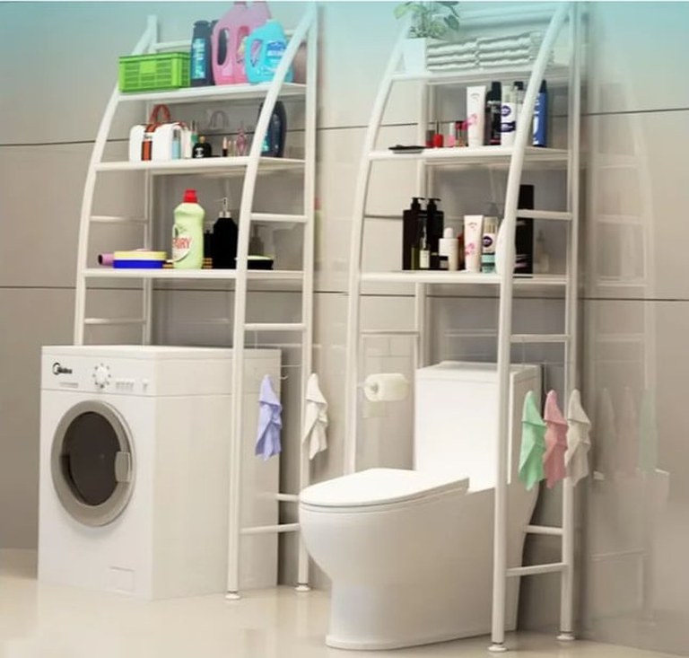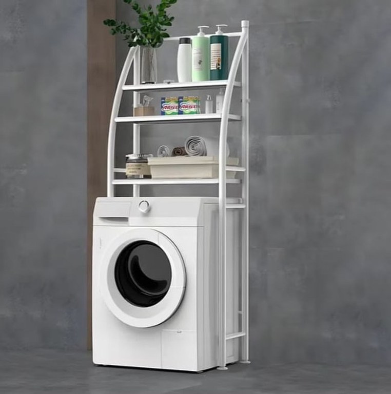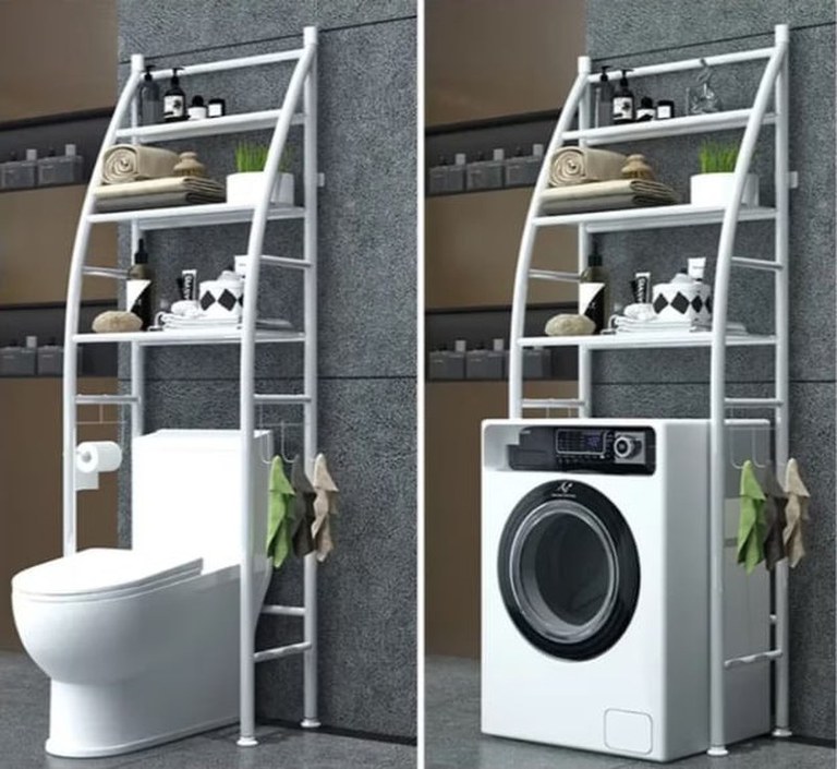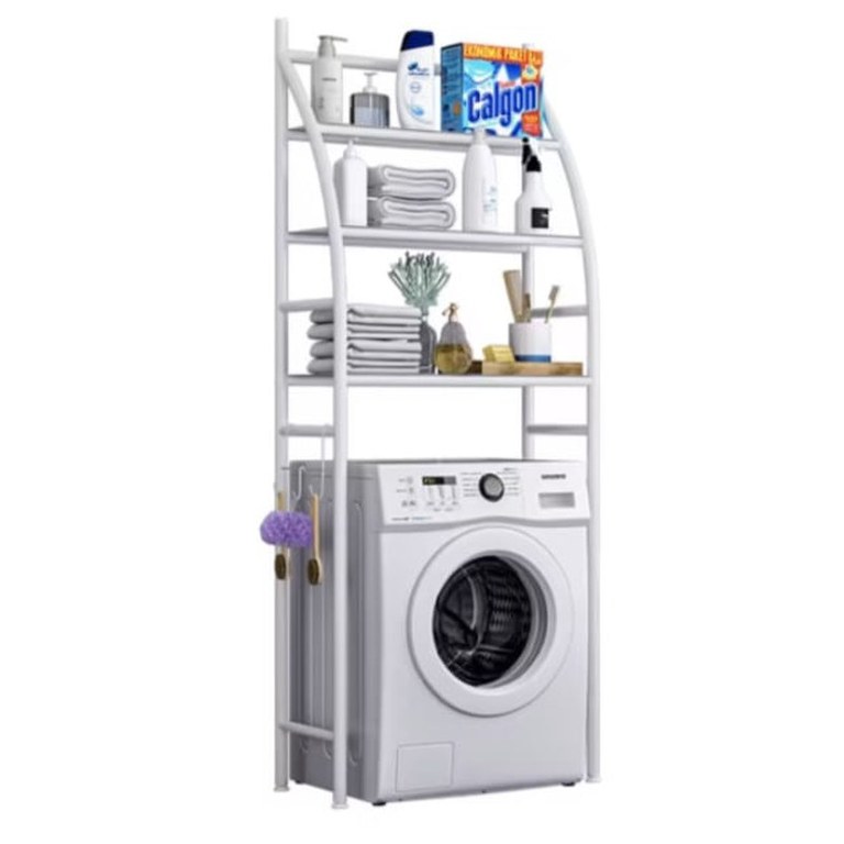 Raft depozitare peste masina de spalat, 3 polite, alb, 152 x 65 x 25 cm/nUn raft de depozitare format din trei rafturi, conceput pentru a fi plasat deasupra toaletei sau masinii de spalat rufe, reprezinta o solutie pentru a crea spatii suplimentare de depozitare intr-o baie supraaglomerata sau intr-o spalatorie./nCu o structura simpla si cateva accesorii, acest raft de depozitare ofera durabilitate si stabilitate. Acest organizer utilizeaza spatiul neutilizat deasupra toaletei sau masinii de spalat rufe pentru a crea spatii aditionale de depozitare, unde puteti stoca detergent lichid sau solid, sampon, gel de dus, si altele. Va ajuta sa va organizati mai eficient intr-o baie aglomerata. Asamblarea raftului este usoara datorita instructiunilor detaliate incluse in pachetul de livrare./nAvantaje:/n/nExista pasi clari de instalare si imagini in manualul de instalare, astfel incat sa puteti asambla rapid produsul./nPuteti alege culoarea potrivita in functie de stilul baii, oferind nu doar spatiu suplimentar de depozitare, ci si un aspect mai curat si ordonat al baii./nAcest raft permite depozitarea nu doar a prosoapelor, hartiei igienice, sampoanelor si altor articole de toaleta, ci si a plantelor in ghivece. Distanta extinsa intre fiecare raft permite plasarea articolelor de diferite inaltimi. De asemenea, exista trei suporturi suplimentare pentru prosoape si role pentru hartie. Cu trei niveluri de spatiu de depozitare, nu se pierde nicio necesitate pentru articolele de curatenie./nRaftul este realizat din conducte de otel groase, iar conducta de otel atasata de perete este intarita pentru a preveni instabilitatea. Picioarele reglabile de la baza permit ajustari usoare./n/nSpecificatii produs:/n/nCuloare: alb/nInaltimea raftului 152 cm/nLatime raft 65 cm/nAdancime raft 25 cm/nInaltimea de la podea la primul raft 90 cm/nEajere: 3 polite/n