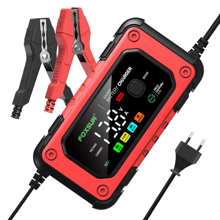 FOXSUR Încarcator Smart 12V 7A pentru Baterii Auto si Moto cu Ecran LED – Eficienta, Siguranta si Reparatie AvansataDescoperiti performanta de top a încarcatorului inteligent FOXSUR 12V 7A, ideal pentru orice baterie auto sau moto. Acest încarcator multifunctional, echipat cu un ecran LED mare, ofera o încarcare rapida si sigura pentru o gama larga de baterii: AGM, GEL, SLA, Flooded (WET), VRLA, si LiFePO4.Caracteristici principale:Ecran LED mare si usor de utilizat: Afiseaza în timp real tensiunea de încarcare, curentul si procentajul de încarcare a bateriei. Design intuitiv pentru o utilizare simpla si rapida.Moduri multiple de încarcare: Dispune de patru moduri distincte pentru bateriile auto, AGM, moto si un mod special de reparatie, asigurând o încarcare optimizata si o prelungire a duratei de viata a bateriei.Functie de reparatie avansata: Modul de reparatie cu puls poate recupera si revitaliza bateriile vechi, neutilizate sau sulfata, oferind o noua viata bateriilor uzate.Protectie completa: Include protectii împotriva polaritatii inverse, supratensiunii, supraîncarcarii, supracurentului, scurtcircuitului si supraîncalzirii, asigurând o încarcare sigura si fiabila.Versatilitate extinsa: Ideal pentru încarcarea bateriilor de la 4Ah la 140Ah, potrivit pentru autoturisme, motociclete, barci, RV-uri, ATV-uri si alte vehicule.Control prin microprocesor: Asigura o încarcare precisa si eficienta, monitorizând constant starea bateriei pentru a adapta procesul de încarcare.Aplicatii extinse: Acest încarcator inteligent este perfect pentru utilizare personala sau profesionala, fiind compatibil cu o gama larga de vehicule si echipamente. Indiferent daca aveti nevoie sa încarcati o baterie de masina, motocicleta, barca sau orice alt tip de baterie de 12V, FOXSUR 12V 7A este solutia ideala.Specificatii tehnice:Tensiune de intrare: 100-240VAC 50/60HzCurent de intrare: 0.4A@230VAC, 0.8A@110VACTensiune de iesire: 12VCurent maxim de încarcare: 7ATemperatura de operare: -20℃ to +45℃Dimensiuni: 1588563mmGreutate neta: 440gCertificari: CE / FCC / RoHSDe ce sa alegeti FOXSUR?Cu FOXSUR, beneficiati de un încarcator de baterii de ultima generatie, care nu doar încarca rapid si eficient, dar ofera si protectii esentiale pentru a preveni deteriorarea bateriilor si a echipamentelor. Tehnologia de reparatie avansata asigura prelungirea duratei de viata a bateriilor, economisind bani si resurse pe termen lung. Designul compact si usor îl face usor de transportat si de utilizat în orice situatie.Nu ratati ocazia de a avea cel mai bun încarcator de baterii pe care piata îl poate oferi. Achizitionati acum FOXSUR 12V 7A si bucurati-va de o performanta excelenta si o durata de viata extinsa a bateriilor dvs.!