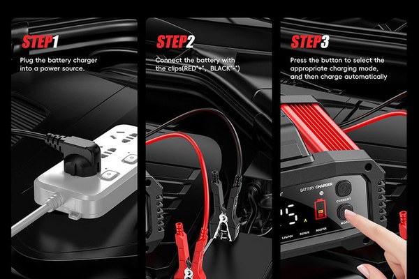 Redresor Incarcator Inteligent Baterii Auto Foxsur® FPT-250, compatibil AGM, GEL, EFB, LifFePO4, 25A, 12V/24V potrivit
