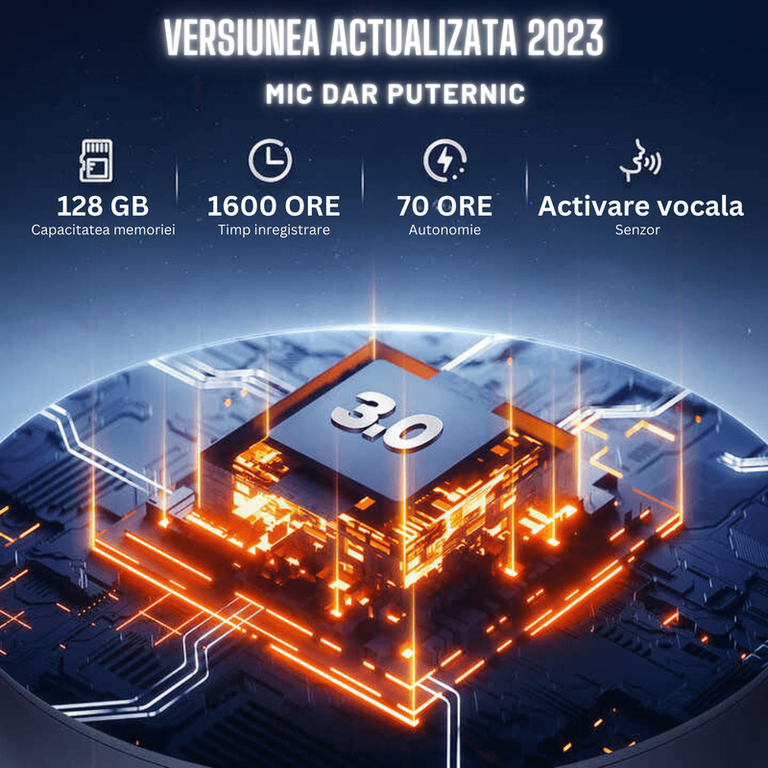 Reportofonul vocal de 128GB ZH007 este cel mai versatil si cel mai bine echipat reportofonul vocal de pe piata. Recent actualizat cu 128GB RAM - Poate atinge un uimitor timp de inregistrare de 1600 de ore (70 de zile) si o durata de viata a bateriei de 70 de ore!/nDesign compact: Designul este initial conceput cu o aranjare delicata a pieselor interne ale dispozitivului, profitand la maximum de spatiul limitat, astfel incat dispozitivul de inregistrare poate fi usor introdus in geanta, buzunar, servieta, jacheta si alte locuri inguste, si este foarte usor ./nInregistrare cu o singura atingere: Fara un proces de operare complicat, doar porneste comutatorul cu o singura atingere pentru a porni inregistrarea! Este foarte usor de folosit. Magnetic & Se potriveste oriunde: Magnetul puternic din interiorul reportofonului audio face ca acesta sa fie usor de atasat la birouri, sine, frigidere, scaune de masina sau orice alte suprafete metalice./nInregistrare HD: Nu te ingrijora de un reportofon depasit cu stocare slaba, baterie si calitatea sunetului! Reportofonul vocal activat de voce ZH007 are un nou design exterior elegant si un nou sistem de inregistrare 3.0. Nu numai ca este elegant, dar ofera si o voce umana mai realista si clara!/nMaterial de inalta calitate: Carcasa reportofonului este facuta din aliaj de zinc, acest material este rezistent la presiune si umiditate si durabil!/nAplicatii & Cel mai bun serviciu pentru clienti: Ideal pentru prelegeri, clase, inspiratie, intalniri, interviuri si altele. Este un cadou minunat pentru profesori, studenti, scriitori, etc. Lasa reportofonul vocal Spionescu sa te insoteasca si sa inregistreze viata ta colorata!/n /n /nREDARE MP3 & MUZICA/nFoloseste-l ca un player MP3 si asculta inregistrarile tale pe computer sau in deplasare! De asemenea, imensul hard drive de 128GB al ZH007 iti permite sa asculti pana la 1600 de ore din muzica, cartile si podcasturile tale preferate! INCARCARE COMPLETA IN 1 ORA/nCu o calitate de inregistrare de top, o durata lunga de viata a bateriei si o capacitate de stocare generoasa, dispozitivul profesional ZH007 este ideal pentru sesiuni de lucru, interviuri si clase. /n ATENTIE/nProdusele noastre, inclusiv camerele de supraveghere, fac parte din categoria dispozitivelor de monitorizare, care sunt in mod obisnuit instalate in magazine si/sau showroom-uri pentru a asigura securitatea bunurilor expuse. In momentul in care activam astfel de camere, este esential sa informam toate persoanele vizate ca se afla sub supraveghere video./nConform legislatiei in vigoare din Romania, utilizarea acestor dispozitive este permisa doar cu acordul explicit al persoanelor care sunt monitorizate prin intermediul acestor dispozitive. Sub nicio forma nu sustinem sau incurajam folosirea produselor noastre pentru a filma sau surprinde vietile private ale altor persoane./nSpionescu nu isi asuma nicio raspundere pentru utilizarea incorecta sau neconforma cu legislatia in vigoare a produselor noastre si nu va fi facuta responsabila pentru utilizarea indecenta sau neadecvata a dispozitivelor noastre de tip urmarire. Este responsabilitatea utilizatorilor sa respecte legile si regulamentele aplicabile in utilizarea produselor noastre.
