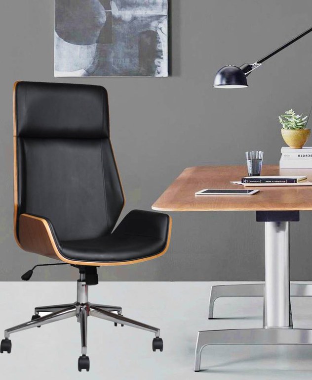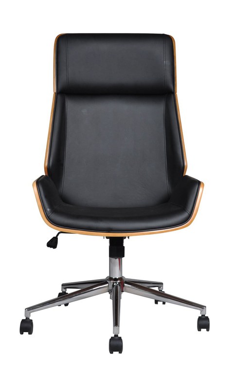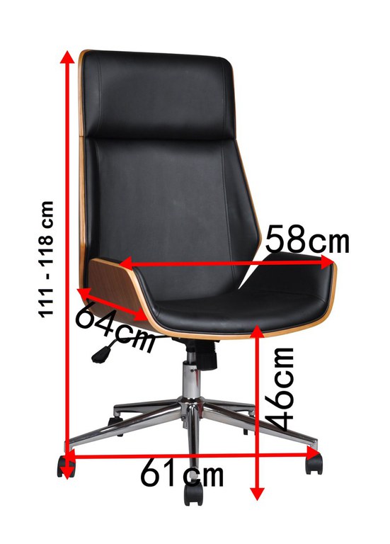 US116 Calisto este un scaun de birou conceput sa va permita sa lucrati confortabil, este recomandat pentru birouri, sali de conferinta, dar se incadreaza perfect si in biroul amenajat acasa. Forma curbata a sezutului ii confera scaunului un plus de confort si stabilitate.Scaunul US116 Calisto are sezutul si spatarul tapitat cu PU negru, atasat pe un cadru de lemn curbat. Baza scaunului este din metal cromat, cu 5 roti din nylon, ce permit o mobilitate usoara pe orice suprafata. Produsul este prevazut cu cilindru pneumatic de ridicare/coborare si rotire 360 de grade si mecanism cu sistem de balans blocabil.Dimensiunile totale ale scaunului sunt 60 cm latime, 65 cm adancime si 118 cm inaltime. Inaltimea scaunului poate fi ajustata intre 111 si 118 cm. Greutatea maxim admisa a scaunului de birou Calisto este de 100 kg.Intretinere: a se curata cu o carpa usor umezita intr-o solutie de apa calduta cu sapun (50% apa, 50% sapun PH neutru), apoi stergeti cu o carpa uscata.Produsul se livreaza demontat si este insotit de instructiuni si accesorii pentru asamblare.