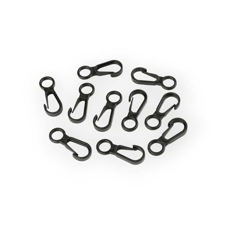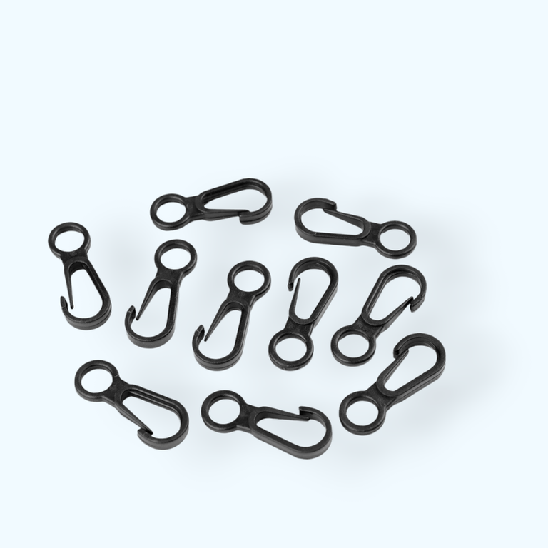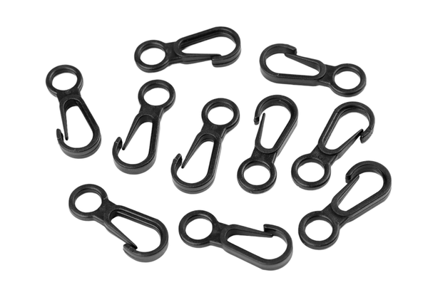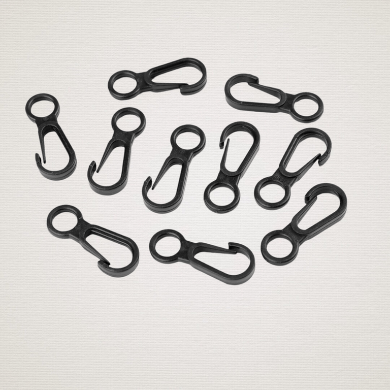 Mini carabininele din plastic sunt potrivite pentru atasarea pandantivelor la rucsacuri, genti pentru copii, etc. Nu este rotativa./n/nDimensiuni: 12 x 32 mm/nLatime gaura de trecere: 7 mm/n/nCompozitie: plastic