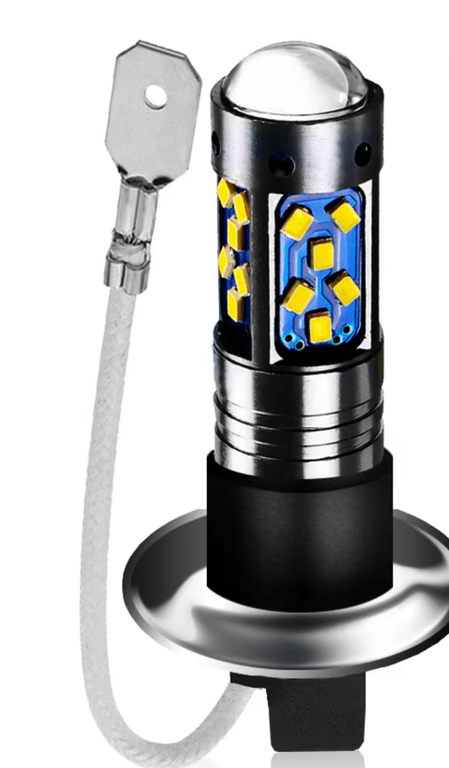 Set 2 becuri auto LED H1 cu lupa 60W 27 SMD 12V 6000K 7000lm