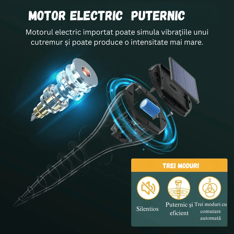 Set 2 Aparate Anti-Cartite BIRAI BR08 – Protectie Eficienta pentru Gradina Ta Scapati de cartite, soareci si alte rozatoare cu Setul de 2 Aparate Anti-Cartite BIRAI BR08. Acest dispozitiv inovator foloseste vibratii si ultrasunete pentru a alunga daunatorii fara a utiliza chimicale sau alte substante periculoase, fiind 100% ecologic si sigur pentru mediul inconjurator. Caracteristici principale: ✔ Tehnologie avansata cu 3 moduri de functionare – Vibratii si ultrasunete variabile pentru o eficienta sporita ✔ Acoperire 360° si raza de actiune extinsa – Fiecare dispozitiv protejeaza o suprafata de pana la 700㎡, fiind ideal pentru gradini, curti, terenuri agricole si livezi ✔ Incarcare solara inteligenta – Echipat cu o baterie Li-ion de 200mAh, dispozitivul functioneaza automat si asigura o protectie continua chiar si in zilele innorate ✔ Rezistent la intemperii – Certificarea IP65 garanteaza o protectie superioara impotriva apei si a prafului, astfel incat dispozitivul poate functiona in orice conditii meteorologice ✔ Usor de instalat si intretinut – Doar introduceti dispozitivul in sol, activati-l si lasati-l sa isi faca treaba fara interventie suplimentara Cum functioneaza? Aparatul emite vibratii si unde sonore la intervale regulate, perturband cartitele, soarecii si alte rozatoare subterane, fortandu-le sa paraseasca zona protejata. Aceste unde nu sunt percepute de oameni sau de animalele de companie, fiind complet inofensive. Ideal pentru: ✅ Gradini si curti ✅ Terenuri agricole si livezi ✅ Spatii verzi, parcuri si peluze Pachetul contine: 4 x Aparate Anti-Cartite BIRAI BR08 Manual de utilizare Alege protectia eficienta si ecologica pentru gradina ta Scapa de cartite si rozatoare intr-un mod sigur, durabil si prietenos cu mediul. Comanda acum si bucura-te de o gradina protejata fara efort.