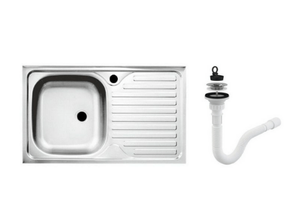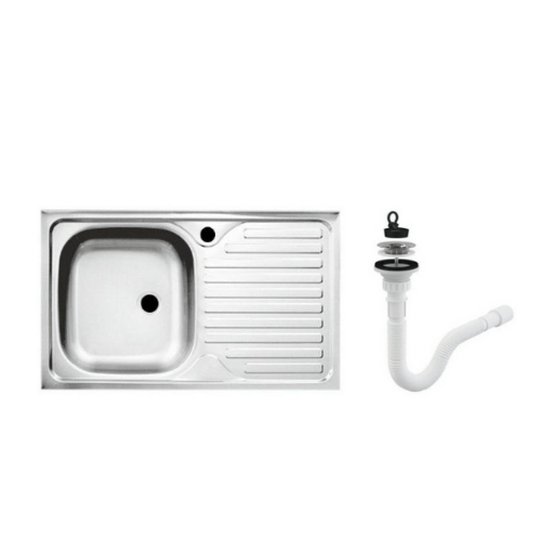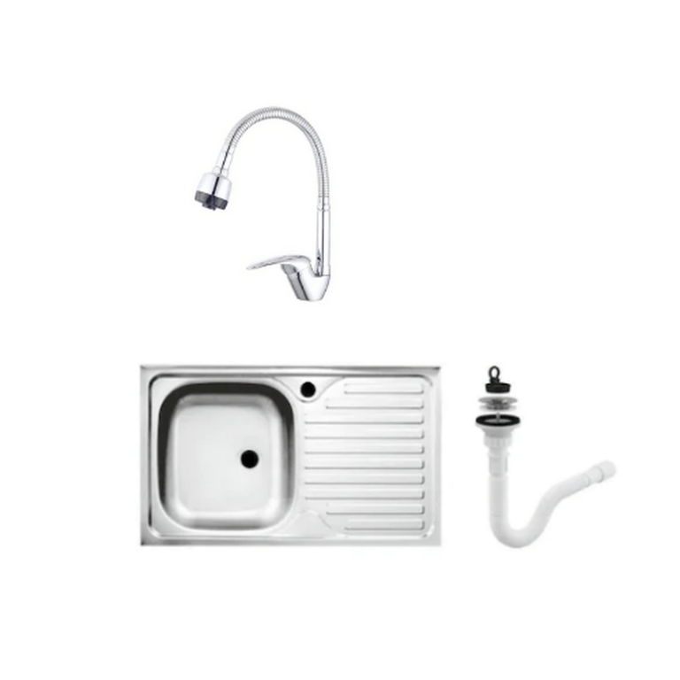 Set chiuveta masca ,inox,cuva stanga ,Raulconstruct ,80x50 cm,baterie lebada flexibila cu sifon de scurgere